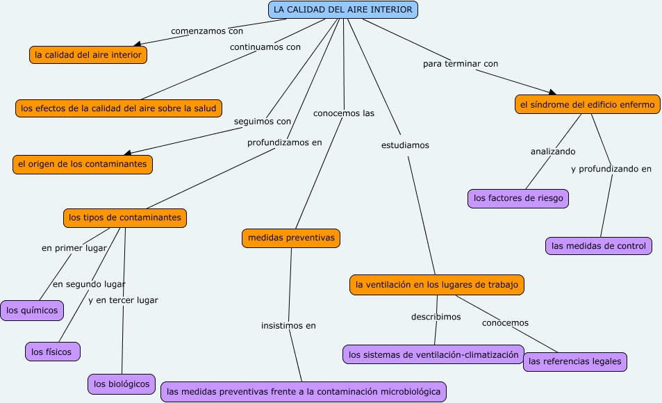 Este Cmap, tiene información relacionada con: Calidad del aire interior, el síndrome del edificio enfermo y profundizando en las medidas de control, la ventilación en los lugares de trabajo conocemos las referencias legales, LA CALIDAD DEL AIRE INTERIOR comenzamos con la calidad del aire interior, LA CALIDAD DEL AIRE INTERIOR continuamos con los efectos de la calidad del aire sobre la salud, LA CALIDAD DEL AIRE INTERIOR seguimos con el origen de los contaminantes, LA CALIDAD DEL AIRE INTERIOR conocemos las medidas preventivas, la ventilación en los lugares de trabajo describimos los sistemas de ventilación-climatización, LA CALIDAD DEL AIRE INTERIOR profundizamos en los tipos de contaminantes, medidas preventivas insistimos en las medidas preventivas frente a la contaminación microbiológica, los tipos de contaminantes y en tercer lugar los biológicos, LA CALIDAD DEL AIRE INTERIOR para terminar con el síndrome del edificio enfermo, el síndrome del edificio enfermo analizando los factores de riesgo, los tipos de contaminantes en segundo lugar los físicos, LA CALIDAD DEL AIRE INTERIOR estudiamos la ventilación en los lugares de trabajo, los tipos de contaminantes en primer lugar los químicos