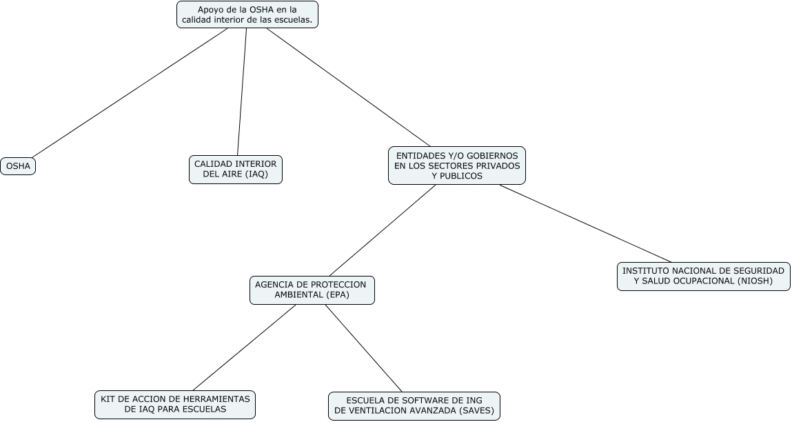 Este Cmap, tiene información relacionada con: IAQ, AGENCIA DE PROTECCION AMBIENTAL (EPA) KIT DE ACCION DE HERRAMIENTAS DE IAQ PARA ESCUELAS, Apoyo de la OSHA en la calidad interior de las escuelas. OSHA, Apoyo de la OSHA en la calidad interior de las escuelas. CALIDAD INTERIOR DEL AIRE (IAQ), ENTIDADES Y/O GOBIERNOS EN LOS SECTORES PRIVADOS Y PUBLICOS INSTITUTO NACIONAL DE SEGURIDAD Y SALUD OCUPACIONAL (NIOSH), AGENCIA DE PROTECCION AMBIENTAL (EPA) ESCUELA DE SOFTWARE DE ING DE VENTILACION AVANZADA (SAVES), Apoyo de la OSHA en la calidad interior de las escuelas. ENTIDADES Y/O GOBIERNOS EN LOS SECTORES PRIVADOS Y PUBLICOS, ENTIDADES Y/O GOBIERNOS EN LOS SECTORES PRIVADOS Y PUBLICOS AGENCIA DE PROTECCION AMBIENTAL (EPA)