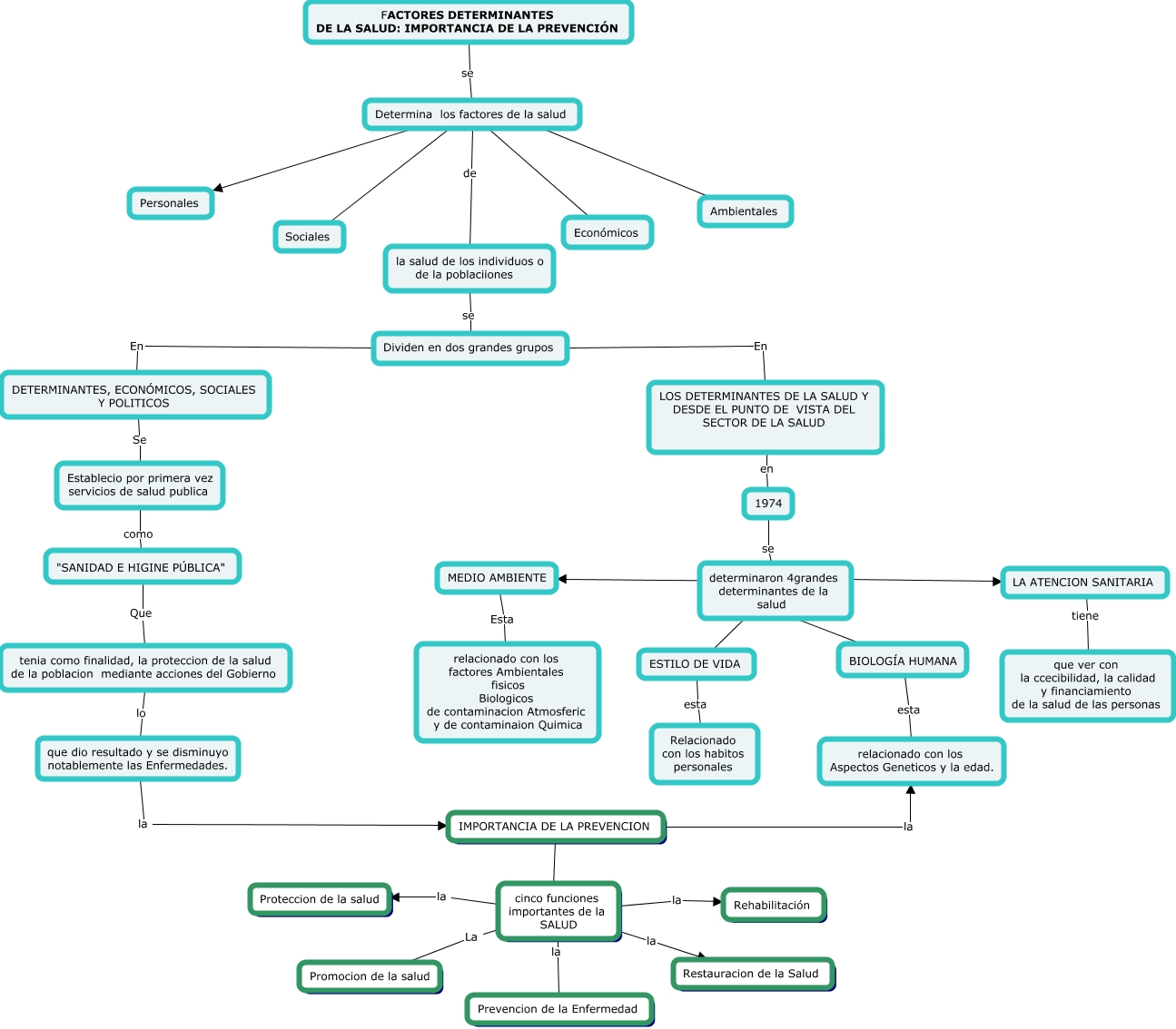 Este Cmap, tiene información relacionada con: Factores determinantes de la salud, determinaron 4grandes determinantes de la salud ???? MEDIO AMBIENTE, Determina los factores de la salud de la salud de los individuos o de la poblaciiones, Establecio por primera vez servicios de salud publica como "SANIDAD E HIGINE PÚBLICA", DETERMINANTES, ECONÓMICOS, SOCIALES Y POLITICOS Se Establecio por primera vez servicios de salud publica, tenia como finalidad, la proteccion de la salud de la poblacion mediante acciones del Gobierno lo que dio resultado y se disminuyo notablemente las Enfermedades., 1974 se determinaron 4grandes determinantes de la salud, "SANIDAD E HIGINE PÚBLICA" Que tenia como finalidad, la proteccion de la salud de la poblacion mediante acciones del Gobierno, determinaron 4grandes determinantes de la salud ???? ESTILO DE VIDA, cinco funciones importantes de la SALUD la Prevencion de la Enfermedad, la salud de los individuos o de la poblaciiones se Dividen en dos grandes grupos, IMPORTANCIA DE LA PREVENCION la relacionado con los Aspectos Geneticos y la edad., determinaron 4grandes determinantes de la salud ???? BIOLOGÍA HUMANA, Determina los factores de la salud ???? Ambientales, determinaron 4grandes determinantes de la salud ???? LA ATENCION SANITARIA, Dividen en dos grandes grupos En DETERMINANTES, ECONÓMICOS, SOCIALES Y POLITICOS, BIOLOGÍA HUMANA esta relacionado con los Aspectos Geneticos y la edad., LOS DETERMINANTES DE LA SALUD Y DESDE EL PUNTO DE VISTA DEL SECTOR DE LA SALUD en 1974, cinco funciones importantes de la SALUD la Proteccion de la salud, cinco funciones importantes de la SALUD La Promocion de la salud, Determina los factores de la salud ???? Personales