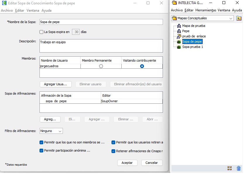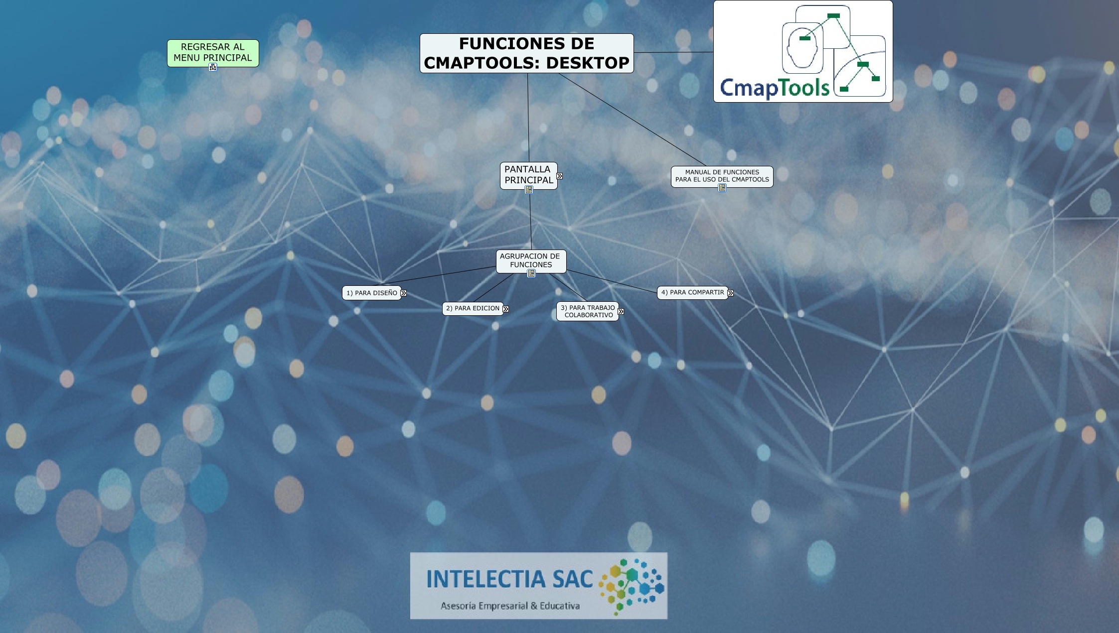 Este Cmap, tiene información relacionada con: CMAPTOOLS FUNCIONES EN MI EQUIPO, PANTALLA PRINCIPAL AGRUPACION DE FUNCIONES, FUNCIONES DE DISEÑO (7) 6) ABRIR UN CMAP pag.8, FUNCIONES DE EDICION (11) 2) MODIFICAR LINEAS DE ENLACE pag.18-23, FUNCIONES DE CMAPTOOLS: DESKTOP, FUNCIONES DE EDICION (11) 3) CAMBIAR COLORES pag.23-28, 3) TRABAJO COLABORATIVO 5) COMPARAR UN CMAP, 4) PARA COMPARTIR (7) 5) COPIAR CMAP A LUGARES pag.42, FUNCIONES DE DISEÑO (7) 5) CREAR UNA CARPETA pag.8-9, 3) EXPORTAR CMAP COMO 3.2) PAG WEB pag.40, 4) PARA COMPARTIR (7) 7) CREADOR DE PRESENTACIONES, AGRUPACION DE FUNCIONES 1) PARA DISEÑO, FUNCIONES DE EDICION (11) 10) VINCULAR PROPUESTAS ENTRE CMAPS pag.39, 4) PARA COMPARTIR (7) 6)PERMISOS Y CONTROL DE ACCESOS pag.41-42, AGRUPACION DE FUNCIONES 2) PARA EDICION, 4) PARA COMPARTIR (7) 8) GRABADORA DE CMAPS, 3) TRABAJO COLABORATIVO 6) BUSCAR, FUNCIONES DE DISEÑO (7) 4) GUARDAR UN CMAP pag.7-8, FUNCIONES DE DISEÑO (7) 1) CREAR UN MAPA EN CMAP - pag.3-4, FUNCIONES DE EDICION (11) 6) NODOS ANIDADOS Y FUSIONADOS pag.36-37, FUNCIONES DE EDICION (11) 5) AGREGAR FLECHAS A LOS ENLACES pag.32-36