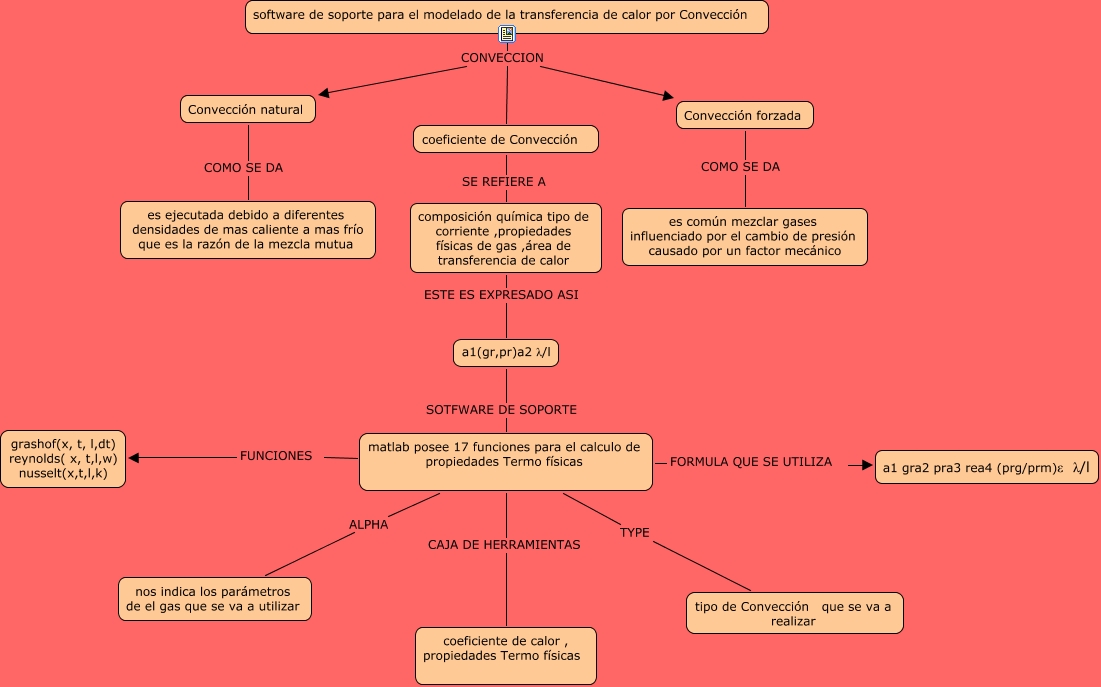 Este Cmap, tiene información relacionada con: software de soporte para el modelado de la transferencia de calor por Convección, software de soporte para el modelado de la transferencia de calor por Convección CONVECCION Convección forzada, matlab posee 17 funciones para el calculo de propiedades Termo físicas FUNCIONES grashof(x, t, l,dt) reynolds( x, t,l,w) nusselt(x,t,l,k), Convección forzada COMO SE DA es común mezclar gases influenciado por el cambio de presión causado por un factor mecánico, composición química tipo de corriente ,propiedades físicas de gas ,área de transferencia de calor ESTE ES EXPRESADO ASI a1(gr,pr)a2 λ/l, software de soporte para el modelado de la transferencia de calor por Convección CONVECCION coeficiente de Convección, matlab posee 17 funciones para el calculo de propiedades Termo físicas TYPE tipo de Convección que se va a realizar, matlab posee 17 funciones para el calculo de propiedades Termo físicas ALPHA nos indica los parámetros de el gas que se va a utilizar, Convección natural COMO SE DA es ejecutada debido a diferentes densidades de mas caliente a mas frío que es la razón de la mezcla mutua, software de soporte para el modelado de la transferencia de calor por Convección CONVECCION Convección natural, a1(gr,pr)a2 λ/l SOTFWARE DE SOPORTE matlab posee 17 funciones para el calculo de propiedades Termo físicas, matlab posee 17 funciones para el calculo de propiedades Termo físicas FORMULA QUE SE UTILIZA a1 gra2 pra3 rea4 (prg/prm)ε λ/l, matlab posee 17 funciones para el calculo de propiedades Termo físicas CAJA DE HERRAMIENTAS coeficiente de calor , propiedades Termo físicas, coeficiente de Convección SE REFIERE A composición química tipo de corriente ,propiedades físicas de gas ,área de transferencia de calor