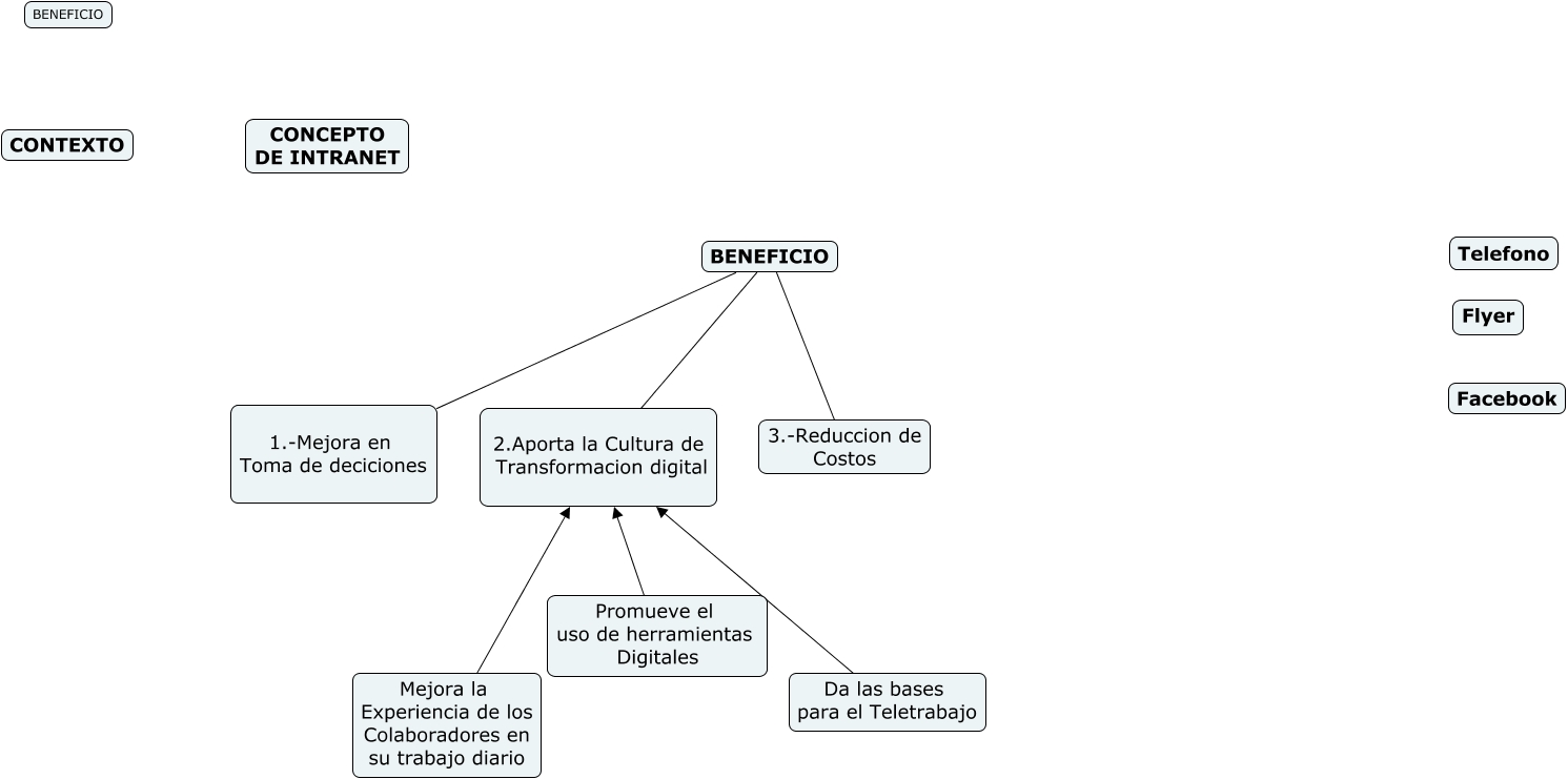 Este Cmap, tiene información relacionada con: MKT DE INTRANET, Da las bases para el Teletrabajo 2.Aporta la Cultura de Transformacion digital, BENEFICIO 3.-Reduccion de Costos, Mejora la Experiencia de los Colaboradores en su trabajo diario 2.Aporta la Cultura de Transformacion digital, BENEFICIO 2.Aporta la Cultura de Transformacion digital, BENEFICIO 1.-Mejora en Toma de deciciones, Promueve el uso de herramientas Digitales 2.Aporta la Cultura de Transformacion digital