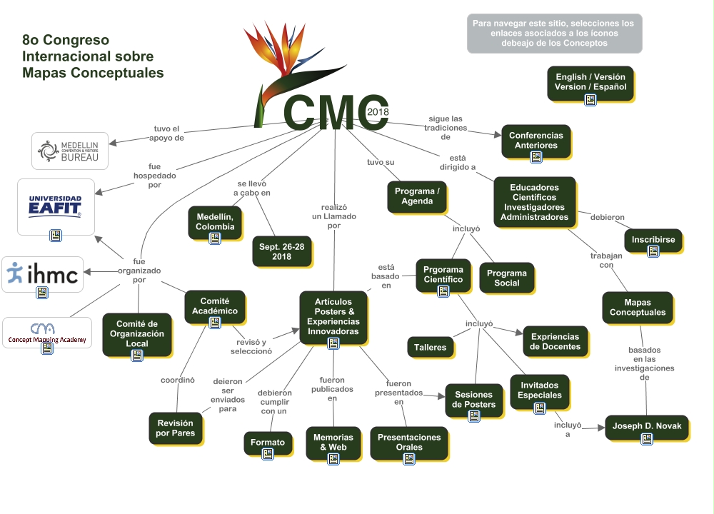 This Concept Map, created with IHMC CmapTools, has information related to: 8o Congreso Mapas Conceptuales - Inicio, Educadores Científicos Investigadores Administradores trabajan con Mapas Conceptuales, fue organizado por, Prgorama Científico incluyó Sesiones de Posters, Prgorama Científico incluyó Talleres, Comité Académico revisó y seleccionó Artículos Posters & Experiencias Innovadoras, Artículos Posters & Experiencias Innovadoras debieron cumplir con un Formato, tuvo su Programa / Agenda, Mapas Conceptuales basados en las investigaciones de Joseph D. Novak, fue organizado por Comité Académico, Prgorama Científico incluyó Invitados Especiales, fue hospedado por Universidad EAFIT, Prgorama Científico incluyó Expriencias de Docentes, Programa / Agenda incluyó Prgorama Científico, realizó un Llamado por Artículos Posters & Experiencias Innovadoras, Artículos Posters & Experiencias Innovadoras deieron ser enviados para Revisión por Pares, Comité Académico coordinó Revisión por Pares, Programa / Agenda incluyó Programa Social, fue organizado por Universidad EAFIT, se llevó a cabo en Sept. 26-28 2018, tuvo el apoyo de ????