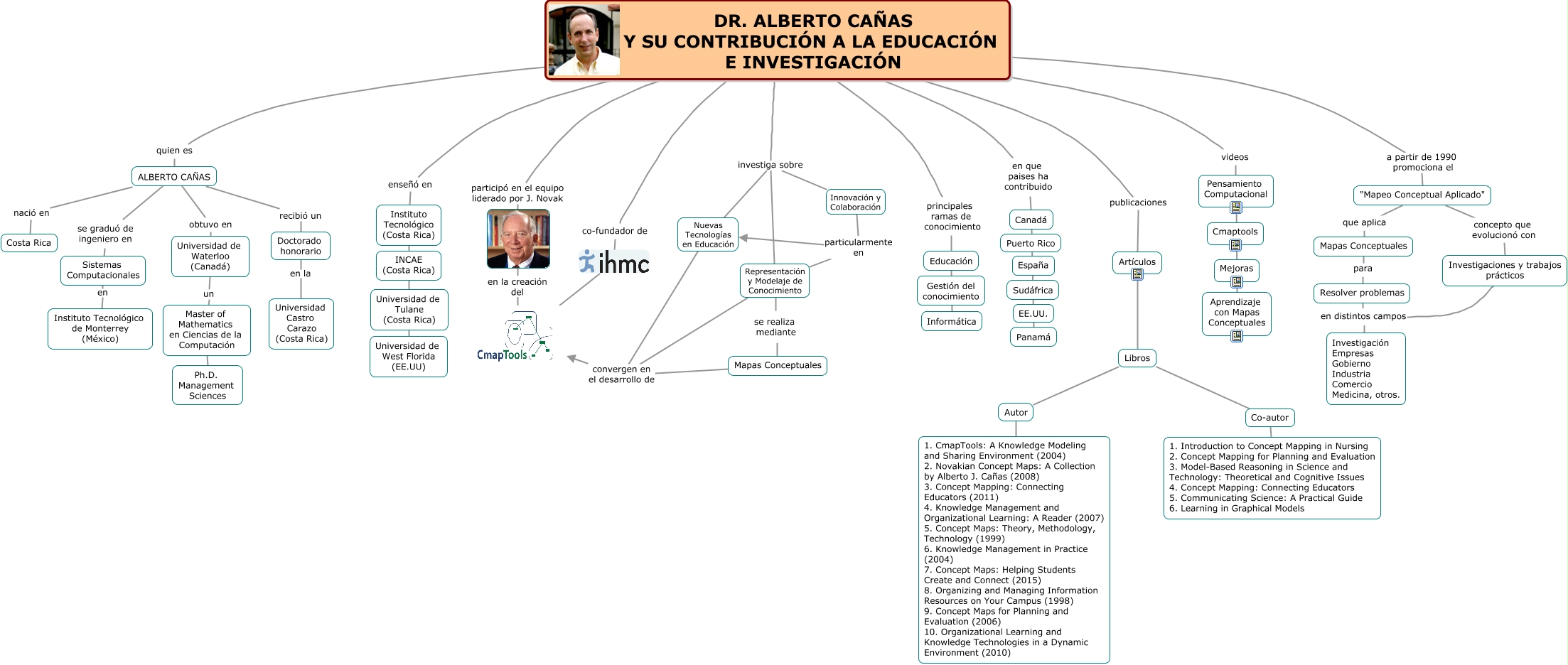 Este Cmap, tiene información relacionada con: DR. ALBERTO CAÑAS Y SU CONTRIBUCIÓN, Sistemas Computacionales en Instituto Tecnológico de Monterrey (México), Instituto Tecnológico (Costa Rica) Universidad de West Florida (EE.UU), Mapas Conceptuales para Resolver problemas, en la creación del, ALBERTO CAÑAS se graduó de ingeniero en Sistemas Computacionales, Investigaciones y trabajos prácticos en distintos campos Investigación Empresas Gobierno Industria Comercio Medicina, otros., Educación Informática, DR. ALBERTO CAÑAS Y SU CONTRIBUCIÓN A LA EDUCACIÓN E INVESTIGACIÓN videos Pensamiento Computacional, DR. ALBERTO CAÑAS Y SU CONTRIBUCIÓN A LA EDUCACIÓN E INVESTIGACIÓN publicaciones Artículos, Libros Co-autor, ALBERTO CAÑAS obtuvo en Universidad de Waterloo (Canadá), DR. ALBERTO CAÑAS Y SU CONTRIBUCIÓN A LA EDUCACIÓN E INVESTIGACIÓN co-fundador de, ALBERTO CAÑAS recibió un Doctorado honorario, "Mapeo Conceptual Aplicado" concepto que evolucionó con Investigaciones y trabajos prácticos, DR. ALBERTO CAÑAS Y SU CONTRIBUCIÓN A LA EDUCACIÓN E INVESTIGACIÓN en que paises ha contribuido Canadá, Nuevas Tecnologías en Educación convergen en el desarrollo de, Master of Mathematics en Ciencias de la Computación Ph.D. Management Sciences, Artículos Libros, Innovación y Colaboración particularmente en Nuevas Tecnologías en Educación,