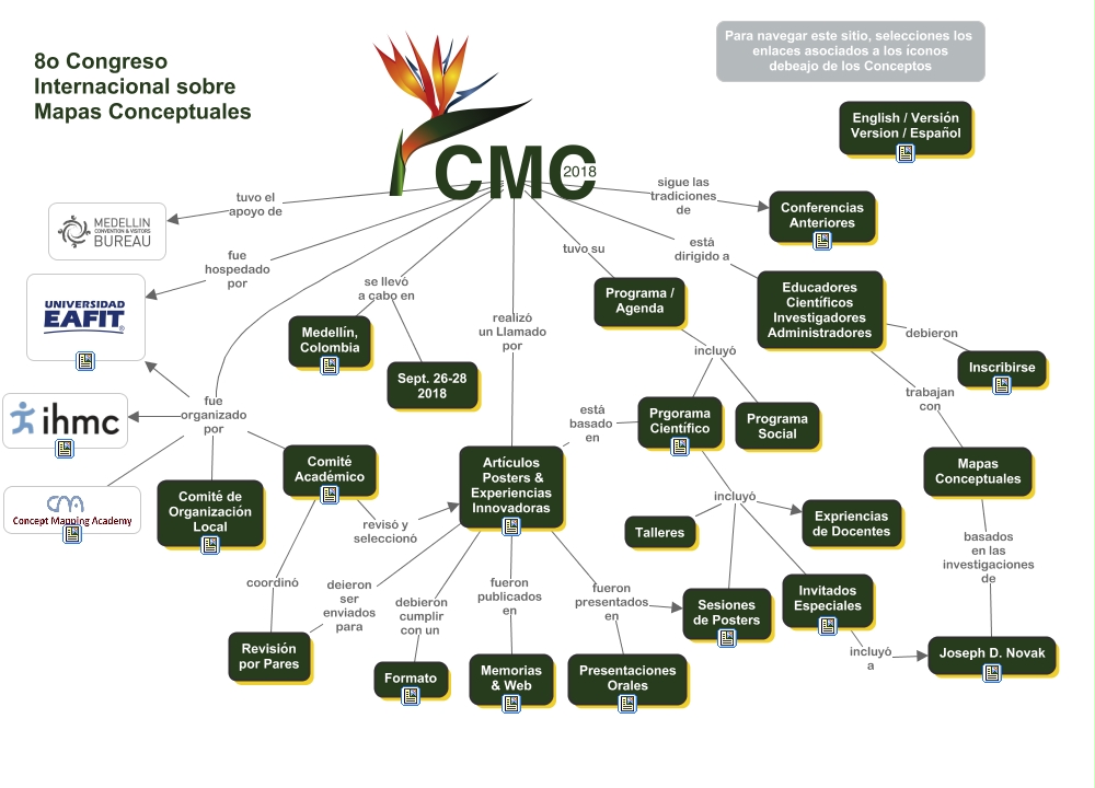 Este Cmap, tiene información relacionada con: 8o Congreso Mapas Conceptuales - Inicio, Artículos Posters & Experiencias Innovadoras fueron publicados en Memorias & Web, fue organizado por, sigue las tradiciones de Conferencias Anteriores, Comité Académico coordinó Revisión por Pares, Artículos Posters & Experiencias Innovadoras fueron presentados en Sesiones de Posters, Prgorama Científico incluyó Sesiones de Posters, se llevó a cabo en Medellín, Colombia, Programa / Agenda incluyó Programa Social, Comité Académico revisó y seleccionó Artículos Posters & Experiencias Innovadoras, Invitados Especiales incluyó a Joseph D. Novak, Programa / Agenda incluyó Prgorama Científico, Prgorama Científico incluyó Expriencias de Docentes, está dirigido a Educadores Científicos Investigadores Administradores, Prgorama Científico incluyó Invitados Especiales, Artículos Posters & Experiencias Innovadoras fueron presentados en Presentaciones Orales, tuvo el apoyo de ????, realizó un Llamado por Artículos Posters & Experiencias Innovadoras, fue organizado por Universidad EAFIT, se llevó a cabo en Sept. 26-28 2018, Prgorama Científico está basado en Artículos Posters & Experiencias Innovadoras
