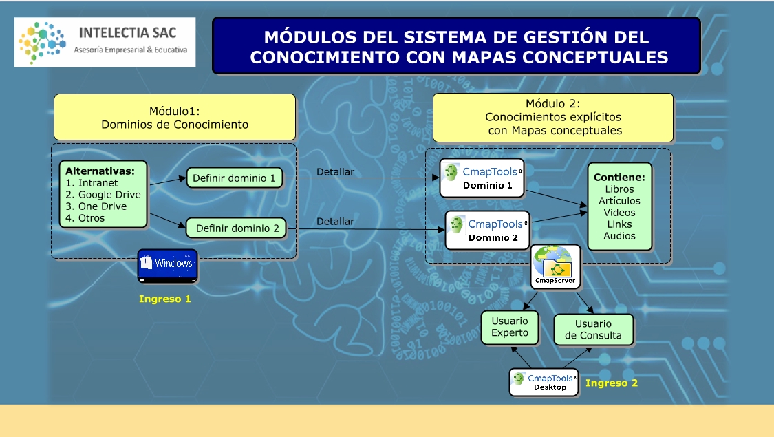 Este Cmap, tiene información relacionada con: Gestión del Conocimiento con Mapeo Conceptual Aplicado, Usuario de Consulta, Definir dominio 2, Definir dominio 1, Usuario Experto, Usuario de Consulta, Contiene: Libros Artículos Videos Links Audios, Usuario Experto, Contiene: Libros Artículos Videos Links Audios, Alternativas: 1. Intranet 2. Google Drive 3. One Drive 4. Otros Definir dominio 2, Alternativas: 1. Intranet 2. Google Drive 3. One Drive 4. Otros Definir dominio 1