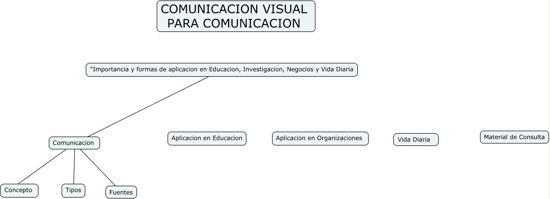 Este Cmap, tiene información relacionada con: Comunicacion visial para comunicacion, Comunicacion Tipos, Comunicacion Concepto, "Importancia y formas de aplicacion en Educacion, Investigacion, Negocios y Vida Diaria Comunicacion, Comunicacion Fuentes