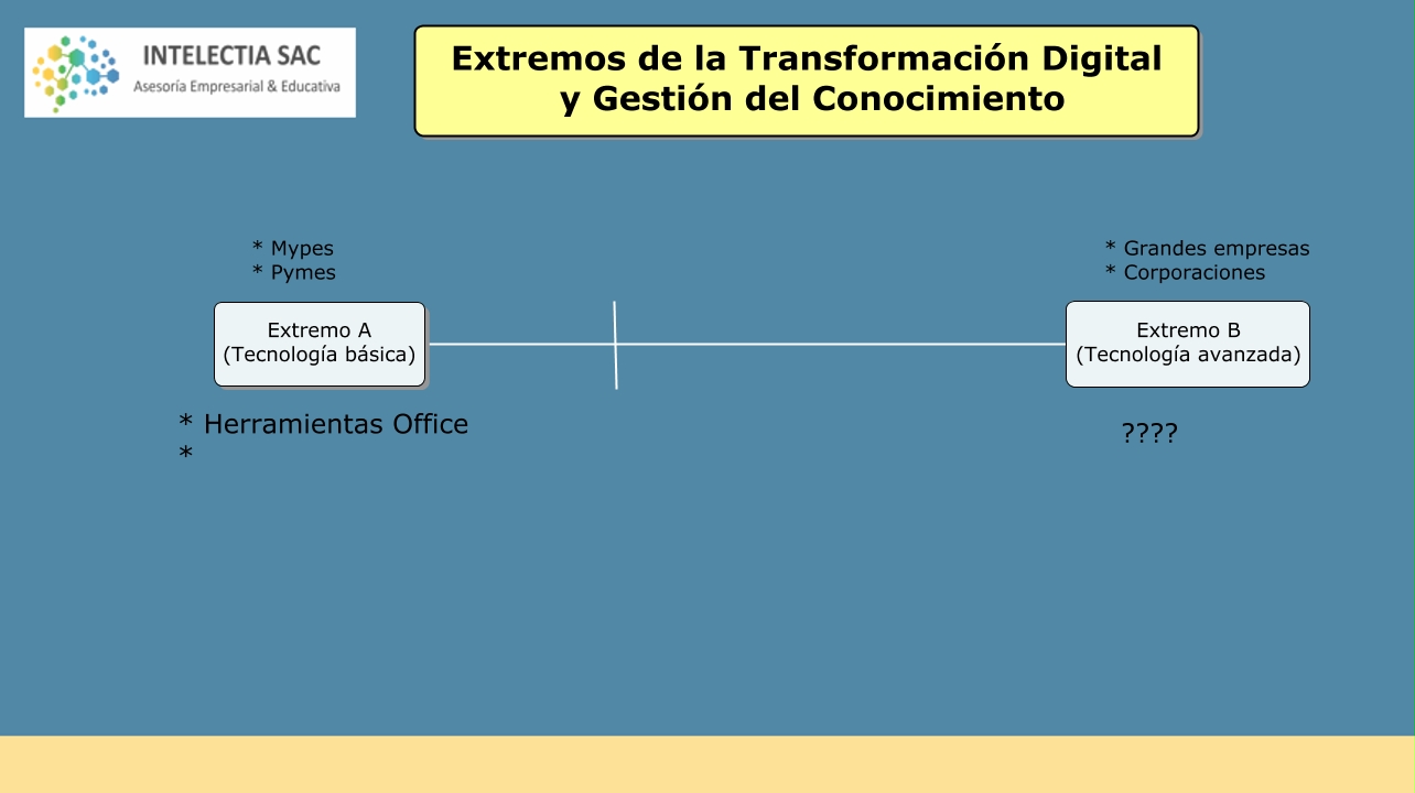Este Cmap, tiene información relacionada con: Extremos de la Transformación Digital y Gestión del Conocimiento, Extremo A (Tecnología básica) Extremo B (Tecnología avanzada),