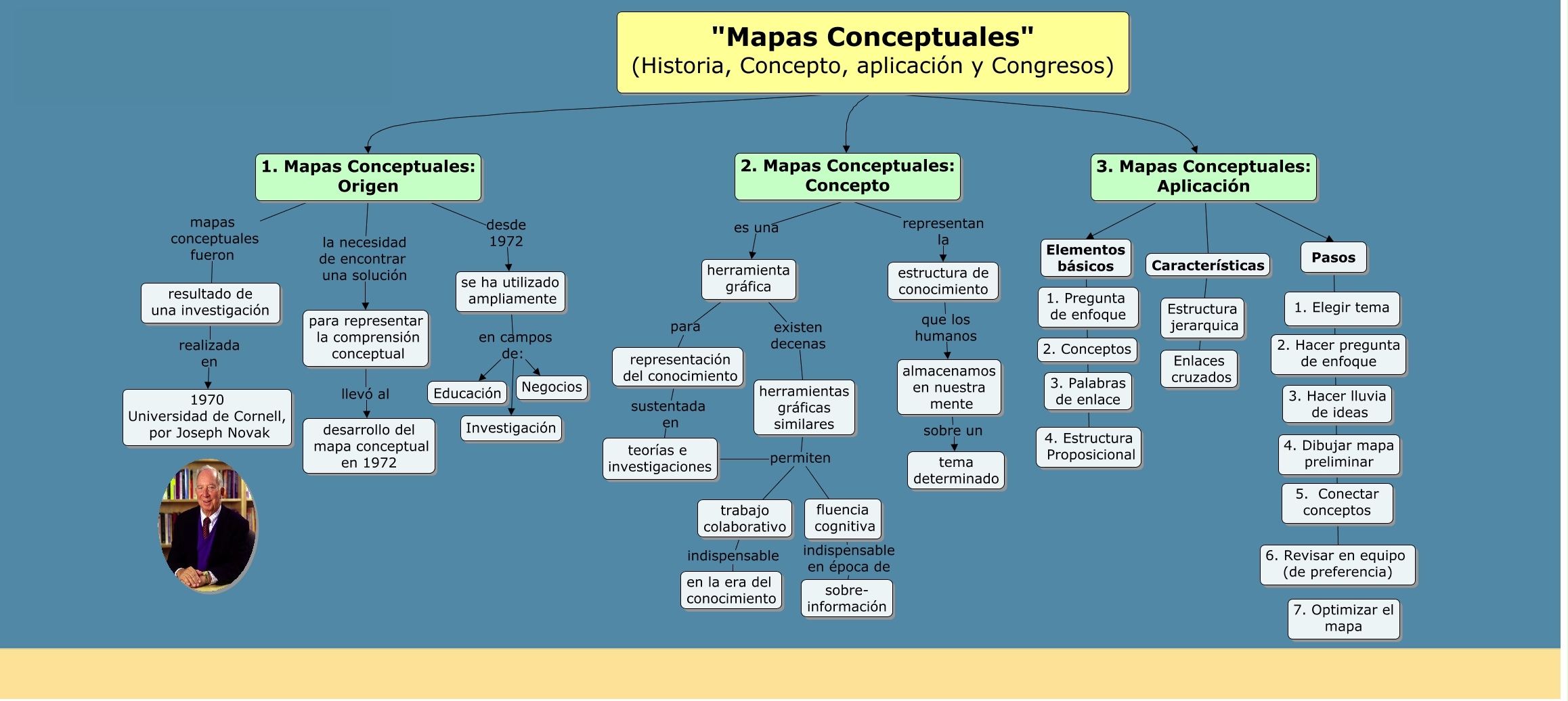 Este Cmap, tiene información relacionada con: Mapas Conceptuales, estructura de conocimiento que los humanos almacenamos en nuestra mente, 3. Mapas Conceptuales: Aplicación Elementos básicos, teorías e investigaciones permiten fluencia cognitiva, 3. Mapas Conceptuales: Aplicación Características, para representar la comprensión conceptual llevó al desarrollo del mapa conceptual en 1972, teorías e investigaciones permiten trabajo colaborativo, herramienta gráfica existen decenas herramientas gráficas similares, se ha utilizado ampliamente en campos de: Investigación, "Mapas Conceptuales" (Historia, Concepto, aplicación y Congresos) 1. Mapas Conceptuales: Origen, trabajo colaborativo indispensable en la era del conocimiento, 1. Mapas Conceptuales: Origen mapas conceptuales fueron resultado de una investigación, Características Enlaces cruzados, se ha utilizado ampliamente en campos de: Negocios, se ha utilizado ampliamente en campos de: Educación, Pasos 6. Revisar en equipo (de preferencia), 3. Mapas Conceptuales: Aplicación Pasos, 1. Mapas Conceptuales: Origen la necesidad de encontrar una solución para representar la comprensión conceptual, resultado de una investigación realizada en 1970 Universidad de Cornell, por Joseph Novak, 2. Mapas Conceptuales: Concepto representan la estructura de conocimiento, "Mapas Conceptuales" (Historia, Concepto, aplicación y Congresos) 3. Mapas Conceptuales: Aplicación