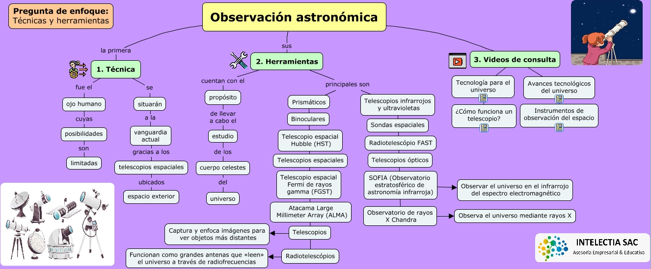 Este Cmap, tiene información relacionada con: Observación astronómica, 1. Técnica se situarán, Telescopios infrarrojos y ultravioletas Observatorio de rayos X Chandra, 3. Videos de consulta Avances tecnológicos del universo, SOFIA (Observatorio estratosférico de astronomía infrarroja) Observar el universo en el infrarrojo del espectro electromagnético, vanguardia actual gracias a los telescopios espaciales, 2. Herramientas cuentan con el propósito, Avances tecnológicos del universo Instrumentos de observación del espacio, estudio de los cuerpo celestes, Telescopios Captura y enfoca imágenes para ver objetos más distantes, Observación astronómica 3. Videos de consulta, situarán a la vanguardia actual, Prismáticos Radiotelescópios, 1. Técnica fue el ojo humano, 2. Herramientas principales son Telescopios infrarrojos y ultravioletas, Observación astronómica la primera 1. Técnica, Tecnología para el universo ¿Cómo funciona un telescopio?, 3. Videos de consulta Tecnología para el universo, ojo humano cuyas posibilidades, telescopios espaciales ubicados espacio exterior, Observatorio de rayos X Chandra Observa el universo mediante rayos X