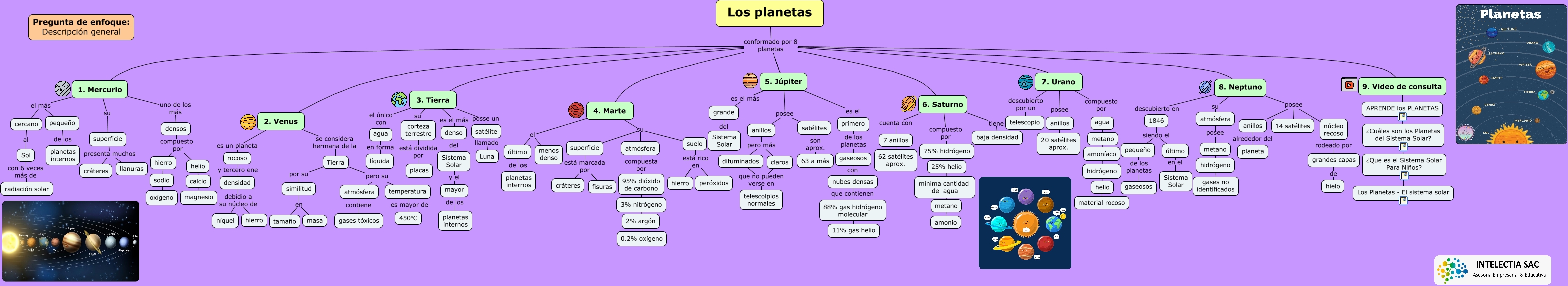 Este Cmap, tiene información relacionada con: Planetas, 3. Tierra es el más denso, densos compuesto por helio, anillos alrededor del planeta, 6. Saturno cuenta con 7 anillos, suelo está rico en hierro, suelo está rico en peróxidos, Los planetas conformado por 8 planetas 7. Urano, 1. Mercurio el más pequeño, 8. Neptuno su atmósfera, 4. Marte el último, cercano al Sol, satélites son aprox. 63 a más, 1. Mercurio su superficie, 4. Marte su suelo, 9. Video de consulta APRENDE los PLANETAS, Sistema Solar y el mayor, grande del Sistema Solar, denso del Sistema Solar, 2. Venus se considera hermana de la Tierra, 6. Saturno compuesto por 75% hidrógeno