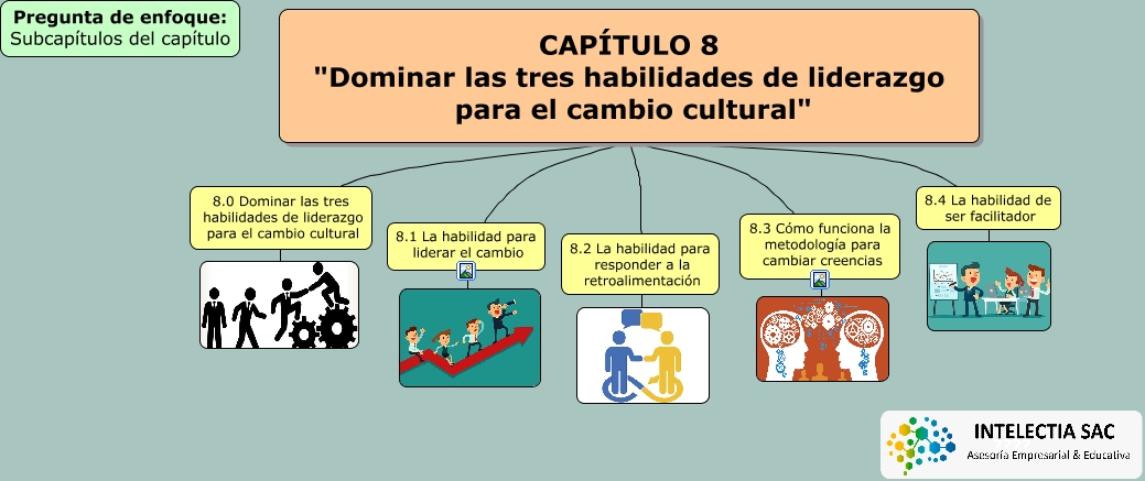 Este Cmap, tiene información relacionada con: CAPÍTULO 8 - Dominar las tres habilidades de liderazgo para el cambio cultural, CAPÍTULO 8 "Dominar las tres habilidades de liderazgo para el cambio cultural" 8.1 La habilidad para liderar el cambio, 8.1 La habilidad para liderar el cambio, 8.2 La habilidad para responder a la retroalimentación, CAPÍTULO 8 "Dominar las tres habilidades de liderazgo para el cambio cultural" 8.4 La habilidad de ser facilitador, 8.0 Dominar las tres habilidades de liderazgo para el cambio cultural, 8.3 Cómo funciona la metodología para cambiar creencias, 8.4 La habilidad de ser facilitador, CAPÍTULO 8 "Dominar las tres habilidades de liderazgo para el cambio cultural" 8.2 La habilidad para responder a la retroalimentación, CAPÍTULO 8 "Dominar las tres habilidades de liderazgo para el cambio cultural" 8.3 Cómo funciona la metodología para cambiar creencias, CAPÍTULO 8 "Dominar las tres habilidades de liderazgo para el cambio cultural" 8.0 Dominar las tres habilidades de liderazgo para el cambio cultural
