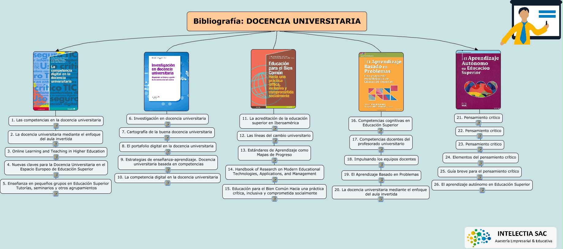 Este Cmap, tiene información relacionada con: Repositorio de docencia universitaria, Bibliografía: DOCENCIA UNIVERSITARIA, 15. Educación para el Bien Común Hacia una práctica crítica, inclusiva y comprometida socialmente, 10. La competencia digital en la docencia universitaria, 5. Enseñanza en pequeños grupos en Educación Superior Tutorías, seminarios y otros agrupamientos, Bibliografía: DOCENCIA UNIVERSITARIA, Bibliografía: DOCENCIA UNIVERSITARIA, Bibliografía: DOCENCIA UNIVERSITARIA, 20. La docencia universitaria mediante el enfoque del aula invertida, Bibliografía: DOCENCIA UNIVERSITARIA, 26. El aprendizaje autónomo en Educación Superior