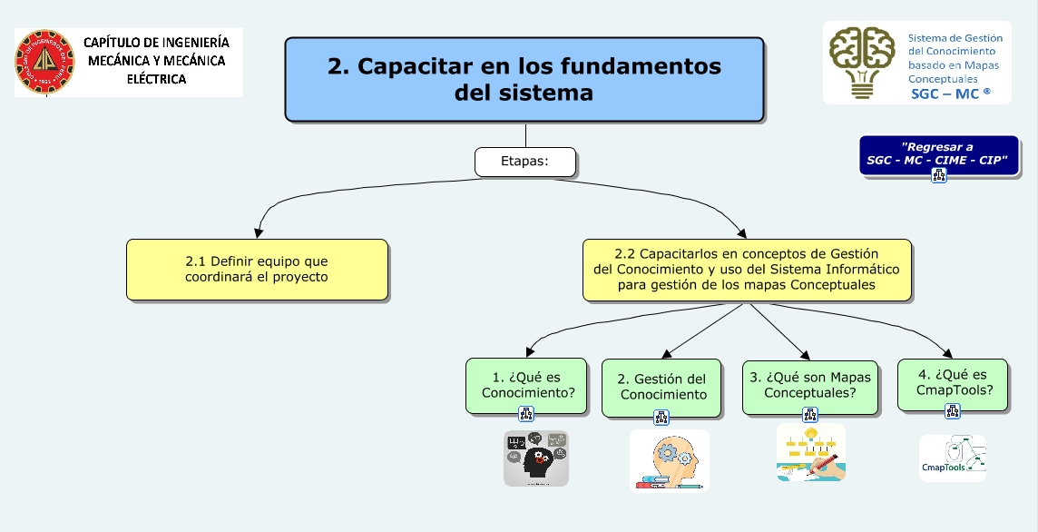Este Cmap, tiene información relacionada con: 2. Capacitar en los fundamentos del sistema, 2.2 Capacitarlos en conceptos de Gestión del Conocimiento y uso del Sistema Informático para gestión de los mapas Conceptuales 1. ¿Qué es Conocimiento?, Etapas: 2.1 Definir equipo que coordinará el proyecto, 2.2 Capacitarlos en conceptos de Gestión del Conocimiento y uso del Sistema Informático para gestión de los mapas Conceptuales 2. Gestión del Conocimiento, 2. Capacitar en los fundamentos del sistema Etapas:, 2.2 Capacitarlos en conceptos de Gestión del Conocimiento y uso del Sistema Informático para gestión de los mapas Conceptuales 4. ¿Qué es CmapTools?, Etapas: 2.2 Capacitarlos en conceptos de Gestión del Conocimiento y uso del Sistema Informático para gestión de los mapas Conceptuales, 2.2 Capacitarlos en conceptos de Gestión del Conocimiento y uso del Sistema Informático para gestión de los mapas Conceptuales 3. ¿Qué son Mapas Conceptuales?