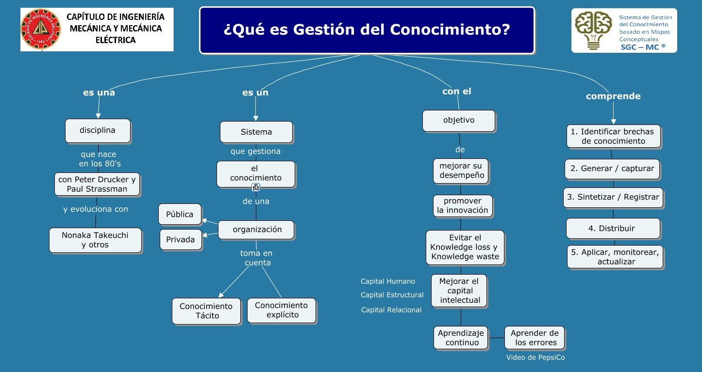 Este Cmap, tiene información relacionada con: Qué es Gestion del Conocimiento, organización ???? Pública, 3. Sintetizar / Registrar ???? 4. Distribuir, Sistema que gestiona el conocimiento, 2. Generar / capturar ???? 3. Sintetizar / Registrar, organización ???? Privada, 1. Identificar brechas de conocimiento ???? 2. Generar / capturar, objetivo de Aprendizaje continuo, organización toma en cuenta Conocimiento Tácito, el conocimiento de una organización, 4. Distribuir ???? 5. Aplicar, monitorear, actualizar, ¿Qué es Gestión del Conocimiento? comprende 1. Identificar brechas de conocimiento, ¿Qué es Gestión del Conocimiento? con el objetivo, disciplina que nace en los 80's con Peter Drucker y Paul Strassman, ¿Qué es Gestión del Conocimiento? es un Sistema, ¿Qué es Gestión del Conocimiento? es una disciplina, Aprendizaje continuo Aprender de los errores, con Peter Drucker y Paul Strassman y evoluciona con Nonaka Takeuchi y otros, organización toma en cuenta Conocimiento explícito