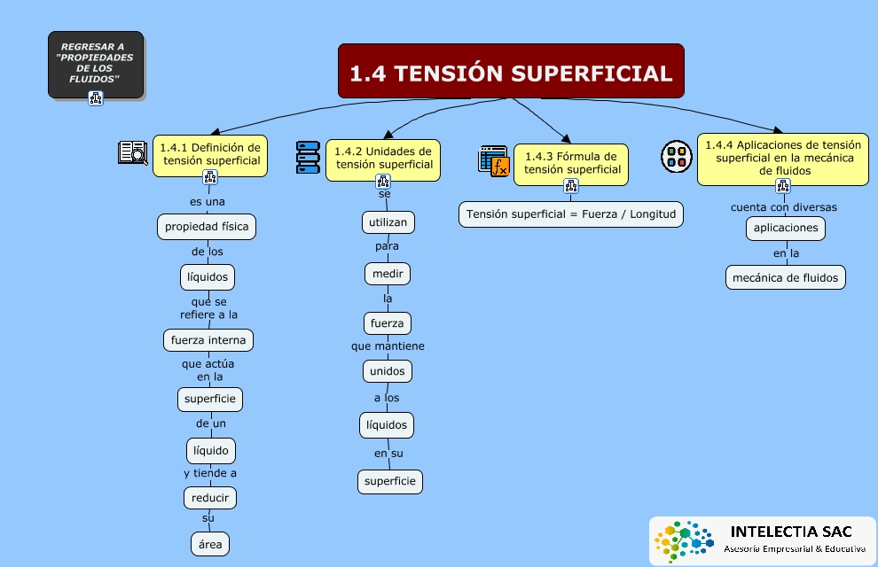Este Cmap, tiene información relacionada con: 1.4 Tensión superficial, superficie de un líquido, utilizan para medir, 1.4 TENSIÓN SUPERFICIAL 1.4.3 Fórmula de tensión superficial, 1.4.4 Aplicaciones de tensión superficial en la mecánica de fluidos cuenta con diversas aplicaciones, líquidos que se refiere a la fuerza interna, 1.4.1 Definición de tensión superficial es una propiedad física, fuerza interna que actúa en la superficie, 1.4 TENSIÓN SUPERFICIAL 1.4.4 Aplicaciones de tensión superficial en la mecánica de fluidos, 1.4.2 Unidades de tensión superficial se utilizan, unidos a los líquidos, fuerza que mantiene unidos, propiedad física de los líquidos, 1.4 TENSIÓN SUPERFICIAL 1.4.1 Definición de tensión superficial, líquido y tiende a reducir, reducir su área, medir la fuerza, 1.4.3 Fórmula de tensión superficial es Tensión superficial = Fuerza / Longitud, líquidos en su superficie, 1.4 TENSIÓN SUPERFICIAL 1.4.2 Unidades de tensión superficial, aplicaciones en la mecánica de fluidos