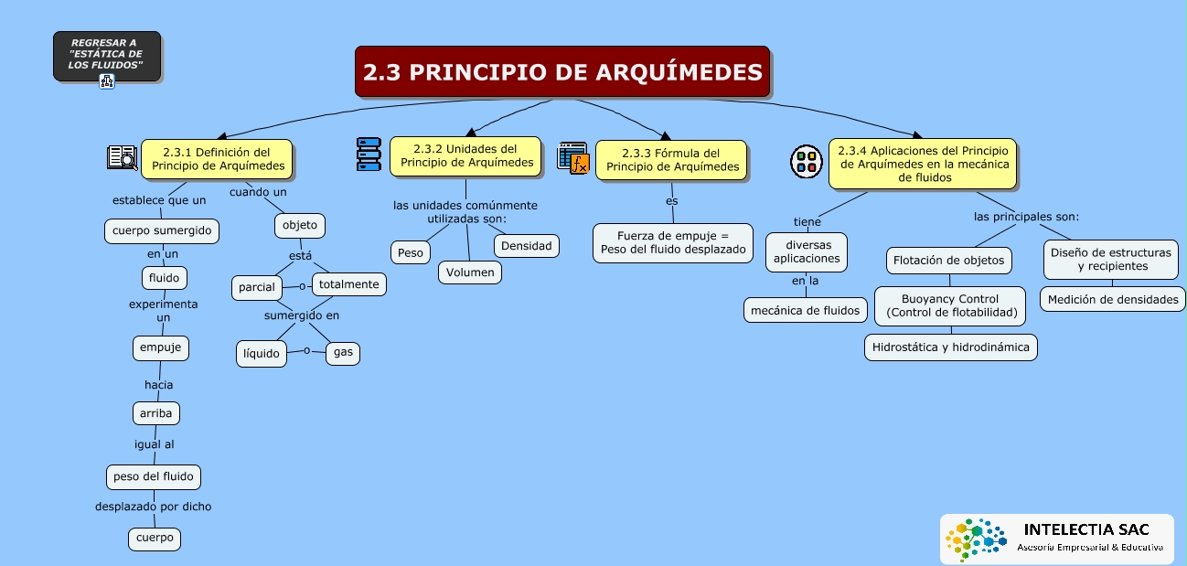 Este Cmap, tiene información relacionada con: 2.3 Principio de Arquímedes, totalmente sumergido en gas, 2.3.1 Definición del Principio de Arquímedes cuando un objeto, 2.3.2 Unidades del Principio de Arquímedes las unidades comúnmente utilizadas son: Densidad, peso del fluido desplazado por dicho cuerpo, parcial sumergido en líquido, 2.3 PRINCIPIO DE ARQUÍMEDES 2.3.2 Unidades del Principio de Arquímedes, arriba igual al peso del fluido, líquido o gas, objeto está parcial, 2.3.1 Definición del Principio de Arquímedes establece que un cuerpo sumergido, 2.3 PRINCIPIO DE ARQUÍMEDES 2.3.3 Fórmula del Principio de Arquímedes, diversas aplicaciones en la mecánica de fluidos, 2.3.4 Aplicaciones del Principio de Arquímedes en la mecánica de fluidos tiene diversas aplicaciones, cuerpo sumergido en un fluido, 2.3.2 Unidades del Principio de Arquímedes las unidades comúnmente utilizadas son: Peso, Diseño de estructuras y recipientes Medición de densidades, fluido experimenta un empuje, 2.3 PRINCIPIO DE ARQUÍMEDES 2.3.1 Definición del Principio de Arquímedes, parcial sumergido en gas, 2.3.2 Unidades del Principio de Arquímedes las unidades comúnmente utilizadas son: Volumen