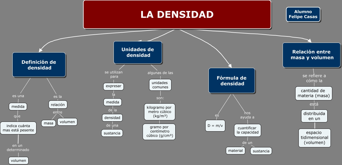Este Cmap, tiene información relacionada con: Qué es la Densidad - Angie Rojas, kilogramo por metro cúbico (kg/m³) gramo por centímetro cúbico (g/cm³), LA DENSIDAD Definición de densidad, LA DENSIDAD Unidades de densidad, medida que indica cuánta mas está pesente, LA DENSIDAD Relación entre masa y volumen, unidades comunes son: kilogramo por metro cúbico (kg/m³), Definición de densidad es la relación, densidad de una sustancia, relación entre volumen, indica cuánta mas está pesente en un determinado volumen, Unidades de densidad se utilizan para expresar, Unidades de densidad algunas de las unidades comunes, cuantificar la capacidad de un material, Fórmula de densidad nos ayuda a cuantificar la capacidad, relación entre masa, cantidad de materia (masa) está distribuida en un, medida de la densidad, expresar la medida, LA DENSIDAD Fórmula de densidad, cuantificar la capacidad de un sustancia