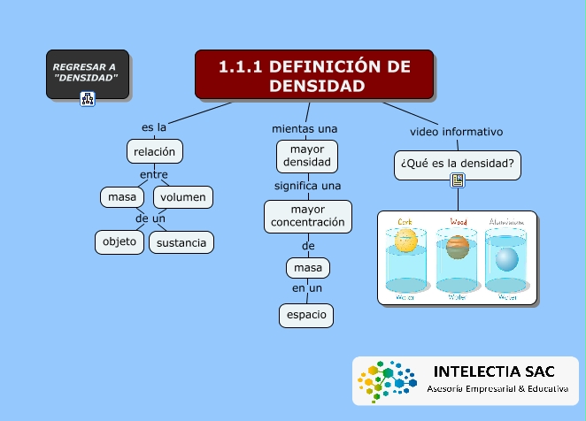 Este Cmap, tiene información relacionada con: 1.1.1 Definición de densidad, ¿Qué es la densidad?, relación entre volumen, volumen de un sustancia, 1.1.1 DEFINICIÓN DE DENSIDAD video informativo ¿Qué es la densidad?, masa de un sustancia, mayor densidad significa una mayor concentración, masa en un espacio, relación entre masa, 1.1.1 DEFINICIÓN DE DENSIDAD mientas una mayor densidad, mayor concentración de masa, masa de un objeto, 1.1.1 DEFINICIÓN DE DENSIDAD es la relación, volumen de un objeto