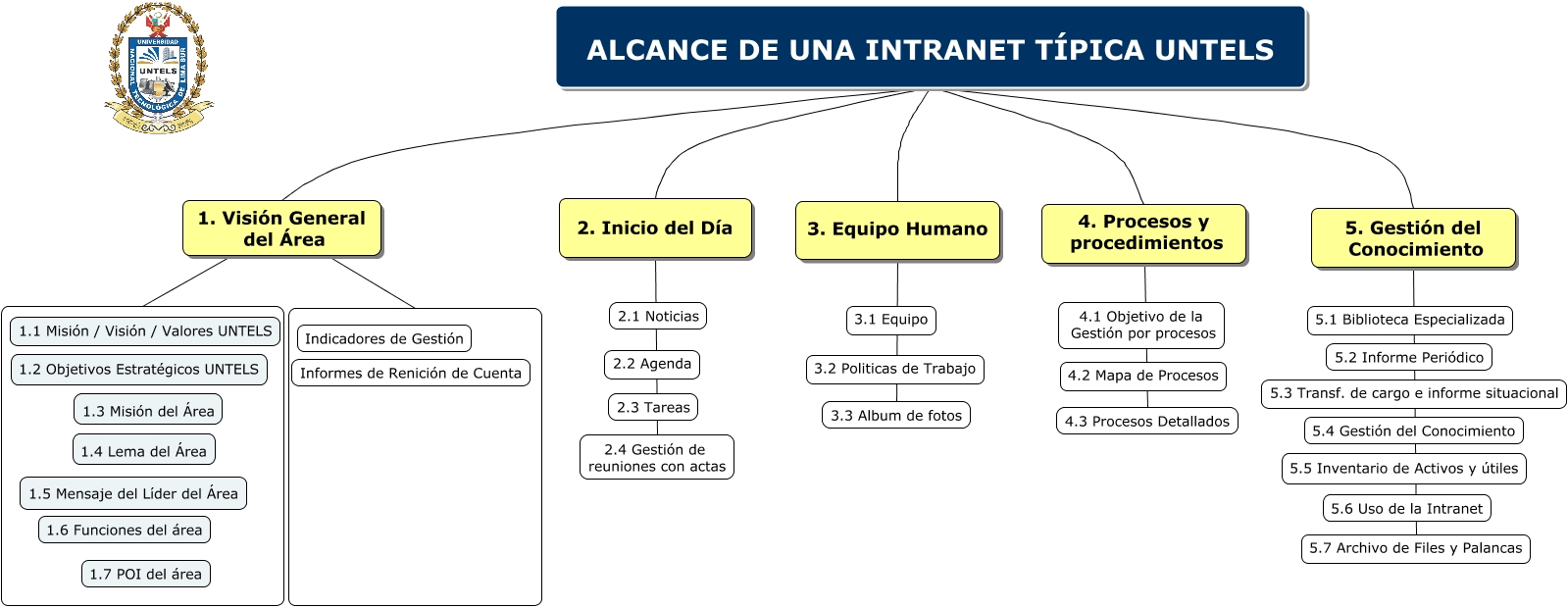 Este Cmap, tiene información relacionada con: INTRANET MÁSTER, ALCANCE DE UNA INTRANET TÍPICA UNTELS 5. Gestión del Conocimiento, 2. Inicio del Día 2.4 Gestión de reuniones con actas, ALCANCE DE UNA INTRANET TÍPICA UNTELS 1. Visión General del Área, 1. Visión General del Área, ALCANCE DE UNA INTRANET TÍPICA UNTELS 3. Equipo Humano, 1. Visión General del Área, ALCANCE DE UNA INTRANET TÍPICA UNTELS 4. Procesos y procedimientos, 5. Gestión del Conocimiento 5.7 Archivo de Files y Palancas, ALCANCE DE UNA INTRANET TÍPICA UNTELS 2. Inicio del Día, 4. Procesos y procedimientos 4.3 Procesos Detallados, 3. Equipo Humano 3.3 Album de fotos