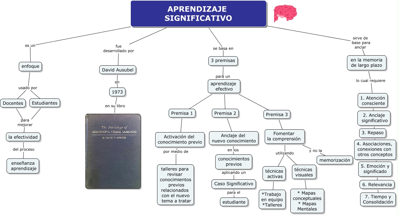 Este Cmap, tiene información relacionada con: Aprendizaje Significativo, APRENDIZAJE SIGNIFICATIVO es un enfoque, David Ausubel en 1973, técnicas visuales * Mapas conceptuales * Mapas Mentales, Fomentar la comprensión utilizando técnicas visuales, la efectividad del proceso enseñanza aprendizaje, Anclaje del nuevo conocimiento en los conocimientos previos, Fomentar la comprensión y no la memorización, en la memoria de largo plazo lo cual requiere 1. Atención consciente, Premisa 3 Fomentar la comprensión, enfoque usado por Estudiantes, conocimientos previos aplicando un Caso Significativo, Docentes para mejorar la efectividad, APRENDIZAJE SIGNIFICATIVO sirve de base para anclar en la memoria de largo plazo, técnicas activas *Trabajo en equipo *Talleres, aprendizaje efectivo Premisa 2, 1. Atención consciente 7. Tiempo y Consolidación, Premisa 2 Anclaje del nuevo conocimiento, enfoque usado por Docentes, aprendizaje efectivo Premisa 3, aprendizaje efectivo Premisa 1