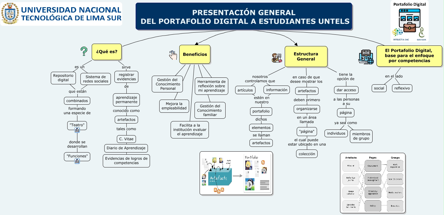 Este Cmap, tiene información relacionada con: PRESENTACIÓN GENERAL DEL PORTAFOLIO DIGITAL UNTELS, página ya sea como miembros de grupo, Beneficios Mejora la empleabilidad, PRESENTACIÓN GENERAL DEL PORTAFOLIO DIGITAL A ESTUDIANTES UNTELS ¿Qué es?, combinados formando una especie de "Teatro", artefactos deben primero organizarse, página ya sea como individuos, Estructura General nosotros controlamos que artículos, Estructura General en caso de que desee mostrar los artefactos, El Portafolio Digital, base para el enfoque por competencias en el lado reflexivo, Sistema de redes sociales que están combinados, Beneficios Gestión del Conocimiento familiar, Beneficios Herramienta de reflexión sobre mi aprendizaje, elementos se llaman artefactos, artículos estén en nuestro portafolio, dar acceso a las personas a su página, Estructura General nosotros controlamos que información, "página" el cual puede estar ubicado en una colección, El Portafolio Digital, base para el enfoque por competencias en el lado social, ¿Qué es? es un Repositorio digital, PRESENTACIÓN GENERAL DEL PORTAFOLIO DIGITAL A ESTUDIANTES UNTELS Beneficios