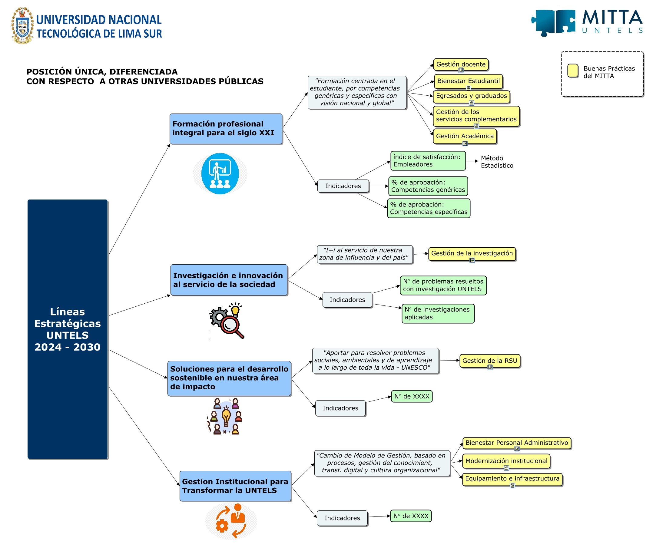 Este Cmap, tiene información relacionada con: Estrategias UNTELS, Líneas Estratégicas UNTELS 2024 - 2030 Investigación e innovación al servicio de la sociedad, "Aportar para resolver problemas sociales, ambientales y de aprendizaje a lo largo de toda la vida - UNESCO" Gestión de la RSU, índice de satisfacción: Empleadores Método Estadístico, "Cambio de Modelo de Gestión, basado en procesos, gestión del conocimient, transf. digital y cultura organizacional" Equipamiento e infraestructura, Indicadores N° de XXXX, Indicadores % de aprobación: Competencias genéricas, Indicadores índice de satisfacción: Empleadores, "Formación centrada en el estudiante, por competencias genéricas y específicas con visión nacional y global" Bienestar Estudiantil, Líneas Estratégicas UNTELS 2024 - 2030 Gestion Institucional para Transformar la UNTELS, "Cambio de Modelo de Gestión, basado en procesos, gestión del conocimient, transf. digital y cultura organizacional" Modernización institucional, Indicadores % de aprobación: Competencias específicas, Gestion Institucional para Transformar la UNTELS "Cambio de Modelo de Gestión, basado en procesos, gestión del conocimient, transf. digital y cultura organizacional", "Formación centrada en el estudiante, por competencias genéricas y específicas con visión nacional y global" Egresados y graduados, Líneas Estratégicas UNTELS 2024 - 2030 Soluciones para el desarrollo sostenible en nuestra área de impacto, "I+i al servicio de nuestra zona de influencia y del país" Gestión de la investigación, Líneas Estratégicas UNTELS 2024 - 2030 Formación profesional integral para el siglo XXI, "Formación centrada en el estudiante, por competencias genéricas y específicas con visión nacional y global" Gestión Académica, "Cambio de Modelo de Gestión, basado en procesos, gestión del conocimient, transf. digital y cultura organizacional" Bienestar Personal Administrativo, Soluciones para el desarrollo sostenible en nuestra área de impacto Indicadores, Investigación e innovación al servicio de la sociedad "I+i al servicio de nuestra zona de influencia y del país"