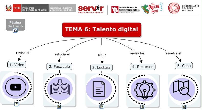 Este Cmap, tiene información relacionada con: TEMA 6 - Talento digital, TEMA 6: Talento digital revisa el 1. Video, TEMA 6: Talento digital lee la 3. Lectura, TEMA 6: Talento digital estudia el 2. Fascículo, TEMA 6: Talento digital resuelve el 5. Caso, 4. Recursos, 1. Video, 5. Caso, 2. Fascículo, TEMA 6: Talento digital revisa los 4. Recursos, 3. Lectura