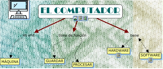 Este Cmap, tiene información relacionada con: Sin Título 1, EL COMPUTADOR es una MÁQUINA, EL COMPUTADOR tiene SOFTWARE, EL COMPUTADOR tiene HARDWARE, EL COMPUTADOR tiene de función PROCESAR, EL COMPUTADOR tiene de función GUARDAR