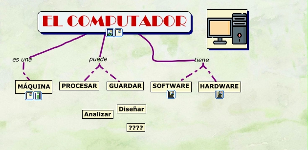 Este Cmap, tiene información relacionada con: EL COMPUTADOR, EL COMPUTADOR tiene SOFTWARE, EL COMPUTADOR tiene HARDWARE, EL COMPUTADOR es una MÁQUINA, EL COMPUTADOR puede GUARDAR, EL COMPUTADOR puede PROCESAR