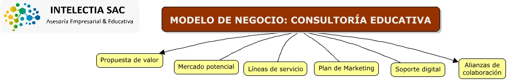 Este Cmap, tiene información relacionada con: MODELO DE NEGOCIO - CONSULTORÍA EDUCATIVA, MODELO DE NEGOCIO: CONSULTORÍA EDUCATIVA Alianzas de colaboración, MODELO DE NEGOCIO: CONSULTORÍA EDUCATIVA Soporte digital, MODELO DE NEGOCIO: CONSULTORÍA EDUCATIVA Mercado potencial, MODELO DE NEGOCIO: CONSULTORÍA EDUCATIVA Plan de Marketing, MODELO DE NEGOCIO: CONSULTORÍA EDUCATIVA Propuesta de valor, MODELO DE NEGOCIO: CONSULTORÍA EDUCATIVA Líneas de servicio