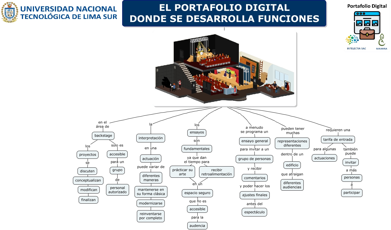 Este Cmap, tiene información relacionada con: La actuación, pueden tener muchas representaciones diferentes, en el área de backstage, interpretación en una actuación, requieren una tarifa de entrada, fundamentales ya que dan el tiempo para prácticar su arte, grupo de personal autorizado, tarifa de entrada para algunas actuaciones, grupo de personas y recibir comentarios, ensayos son fundamentales, a menudo se programa un ensayo general, proyectos se discuten, actuación puede variar de diferentes maneras, prácticar su arte en un espacio seguro, ensayo general para invitar a un grupo de personas, invitar a más personas, ajustes finales antes del espectáculo, backstage solo es accesible, EL PORTAFOLIO DIGITAL DONDE SE DESARROLLA FUNCIONES, discuten finalizan, representaciones diferentes dentro de un edificio