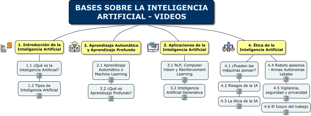 Este Cmap, tiene información relacionada con: BASES SOBRE LA INTELIGENCIA ARTIFICIAL - VIDEOS, 1.1 ¿Qué es la Inteligencia Artificial? 1.2 Tipos de Inteligencia Artificial, 4.4 Robots asesinos - Armas Autónomas Letales 4.6 El futuro del trabajo, 4. Ética de la Inteligencia Artificial 4.1 ¿Pueden las máquinas pensar?, 4.1 ¿Pueden las máquinas pensar? 4.3 La ética de la IA, BASES SOBRE LA INTELIGENCIA ARTIFICIAL - VIDEOS 1. Introducción de la Inteligencia Artificial, BASES SOBRE LA INTELIGENCIA ARTIFICIAL - VIDEOS 4. Ética de la Inteligencia Artificial, 1. Introducción de la Inteligencia Artificial 1.1 ¿Qué es la Inteligencia Artificial?, 3. Aplicaciones de la Inteligencia Artificial 3.2 Inteligencia Artificial Generativa, 2. Aprendizaje Automático y Aprendizaje Profundo 2.2 ¿Qué es Aprendizaje Profundo?, BASES SOBRE LA INTELIGENCIA ARTIFICIAL - VIDEOS 2. Aprendizaje Automático y Aprendizaje Profundo, BASES SOBRE LA INTELIGENCIA ARTIFICIAL - VIDEOS 3. Aplicaciones de la Inteligencia Artificial, 4. Ética de la Inteligencia Artificial 4.4 Robots asesinos - Armas Autónomas Letales