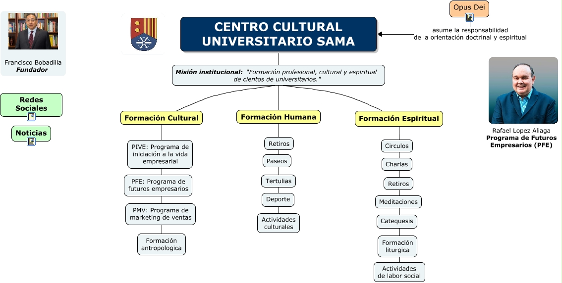 Este Cmap, tiene información relacionada con: CENTRO CULTURAL UNIVERSITARIO SAMA, Formación Espiritual Actividades de labor social, Misión institucional: "Formación profesional, cultural y espiritual de cientos de universitarios." Formación Espiritual, CENTRO CULTURAL UNIVERSITARIO SAMA Misión institucional: "Formación profesional, cultural y espiritual de cientos de universitarios.", Formación Cultural Formación antropologica, Opus Dei asume la responsabilidad de la orientación doctrinal y espiritual CENTRO CULTURAL UNIVERSITARIO SAMA, Misión institucional: "Formación profesional, cultural y espiritual de cientos de universitarios." Formación Cultural, Formación Humana Actividades culturales, Misión institucional: "Formación profesional, cultural y espiritual de cientos de universitarios." Formación Humana