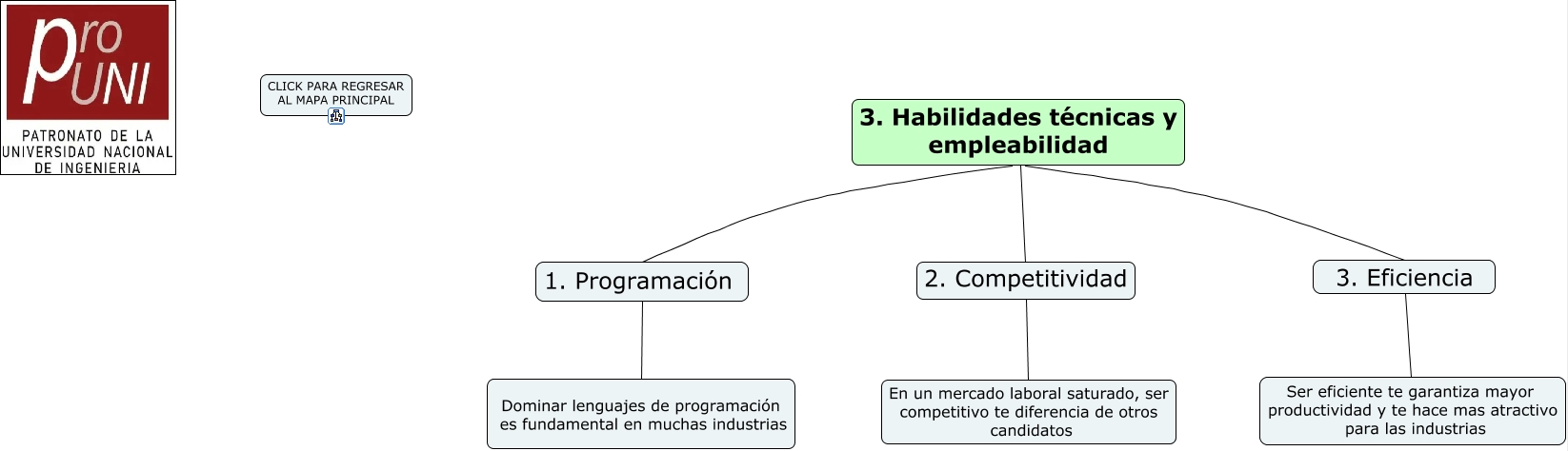 Este Cmap, tiene información relacionada con: 3. Habilidades técnicas y empleabilidad, 3. Eficiencia Ser eficiente te garantiza mayor productividad y te hace mas atractivo para las industrias, 3. Habilidades técnicas y empleabilidad 2. Competitividad, 2. Competitividad En un mercado laboral saturado, ser competitivo te diferencia de otros candidatos, 3. Habilidades técnicas y empleabilidad 3. Eficiencia, 3. Habilidades técnicas y empleabilidad 1. Programación, 1. Programación Dominar lenguajes de programación es fundamental en muchas industrias