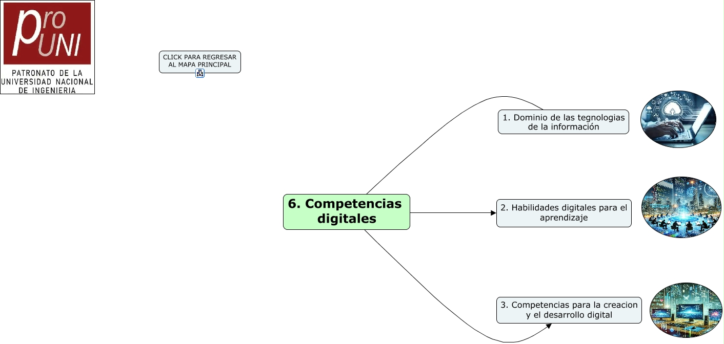 Este Cmap, tiene información relacionada con: 6. Competencias digitales, 6. Competencias digitales 3. Competencias para la creacion y el desarrollo digital, 6. Competencias digitales 1. Dominio de las tegnologias de la información, 6. Competencias digitales 2. Habilidades digitales para el aprendizaje