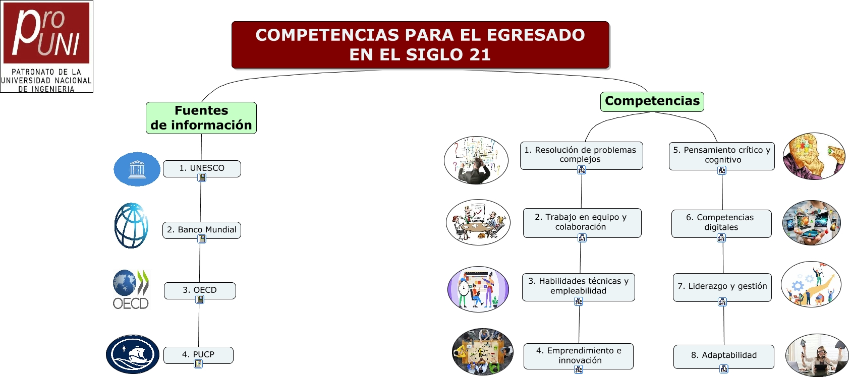 Este Cmap, tiene información relacionada con: COMPETENCIAS PARA EL EGRESADO EN EL SIGLO 21.cmap, Competencias 5. Pensamiento crítico y cognitivo, 5. Pensamiento crítico y cognitivo 8. Adaptabilidad, COMPETENCIAS PARA EL EGRESADO EN EL SIGLO 21 Competencias, COMPETENCIAS PARA EL EGRESADO EN EL SIGLO 21 Fuentes de información, 1. Resolución de problemas complejos 4. Emprendimiento e innovación, Competencias 1. Resolución de problemas complejos, Fuentes de información 4. PUCP