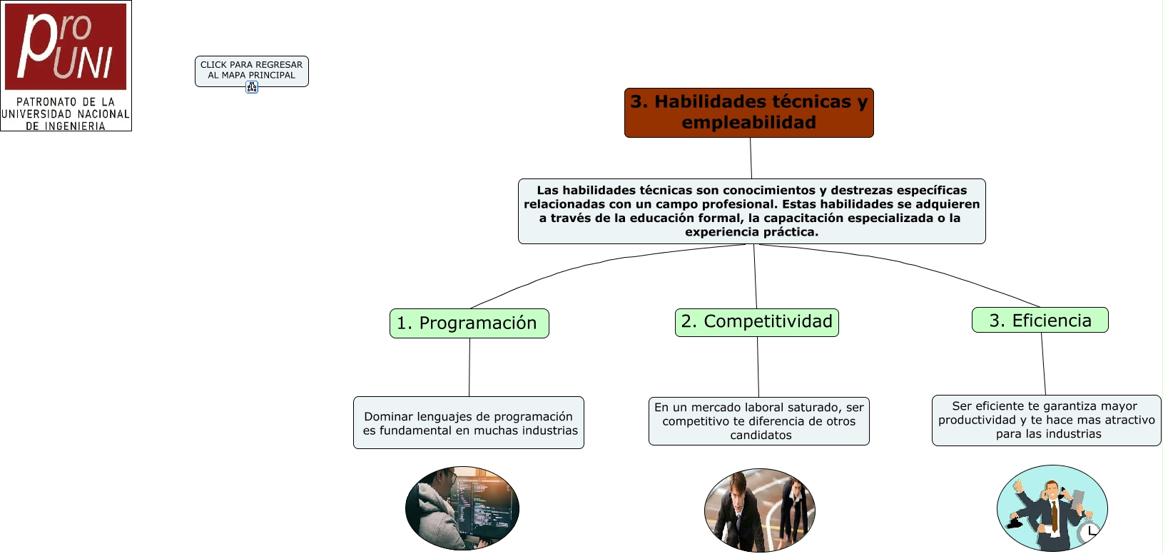 Este Cmap, tiene información relacionada con: 3. Habilidades técnicas y empleabilidad, 3. Eficiencia Ser eficiente te garantiza mayor productividad y te hace mas atractivo para las industrias, Las habilidades técnicas son conocimientos y destrezas específicas relacionadas con un campo profesional. Estas habilidades se adquieren a través de la educación formal, la capacitación especializada o la experiencia práctica. 2. Competitividad, 2. Competitividad En un mercado laboral saturado, ser competitivo te diferencia de otros candidatos, Las habilidades técnicas son conocimientos y destrezas específicas relacionadas con un campo profesional. Estas habilidades se adquieren a través de la educación formal, la capacitación especializada o la experiencia práctica. 3. Eficiencia, Las habilidades técnicas son conocimientos y destrezas específicas relacionadas con un campo profesional. Estas habilidades se adquieren a través de la educación formal, la capacitación especializada o la experiencia práctica. 1. Programación, 3. Habilidades técnicas y empleabilidad Las habilidades técnicas son conocimientos y destrezas específicas relacionadas con un campo profesional. Estas habilidades se adquieren a través de la educación formal, la capacitación especializada o la experiencia práctica., 1. Programación Dominar lenguajes de programación es fundamental en muchas industrias