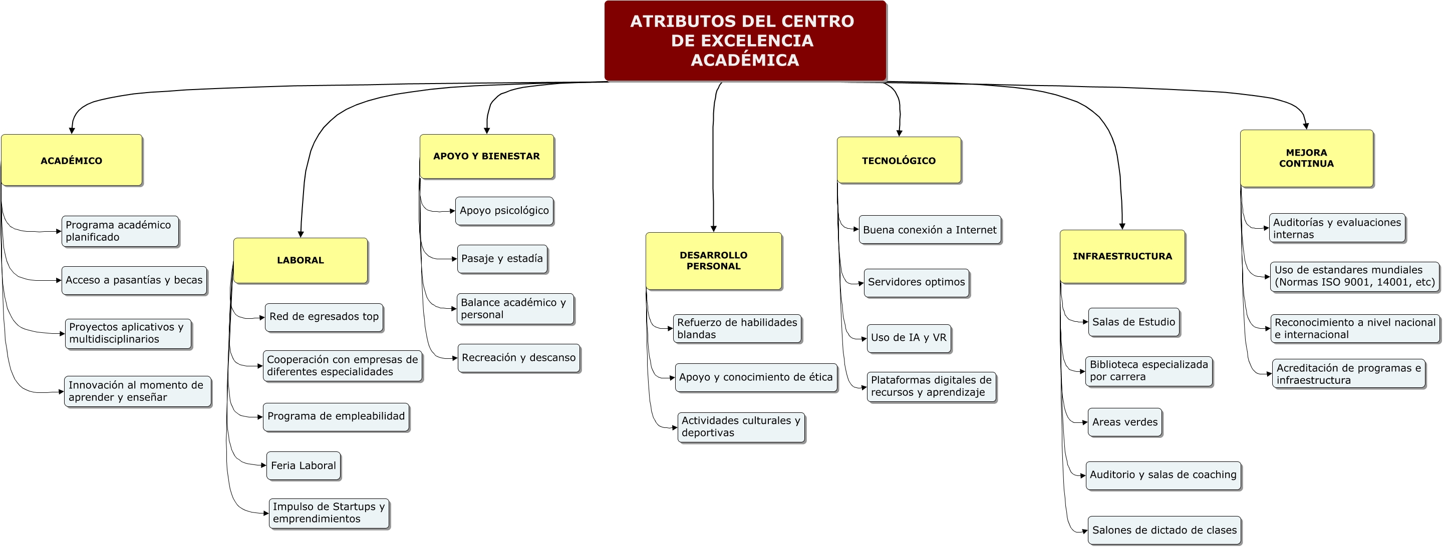 Este Cmap, tiene información relacionada con: ATRIBUTOS DEL CENTRO DE EXCELENCIA, ATRIBUTOS DEL CENTRO DE EXCELENCIA ACADÉMICA TECNOLÓGICO, MEJORA CONTINUA Auditorías y evaluaciones internas, LABORAL Red de egresados top, ATRIBUTOS DEL CENTRO DE EXCELENCIA ACADÉMICA ACADÉMICO, INFRAESTRUCTURA Biblioteca especializada por carrera, INFRAESTRUCTURA Salones de dictado de clases, DESARROLLO PERSONAL Refuerzo de habilidades blandas, ATRIBUTOS DEL CENTRO DE EXCELENCIA ACADÉMICA DESARROLLO PERSONAL, ATRIBUTOS DEL CENTRO DE EXCELENCIA ACADÉMICA MEJORA CONTINUA, ACADÉMICO Innovación al momento de aprender y enseñar, MEJORA CONTINUA Acreditación de programas e infraestructura, ATRIBUTOS DEL CENTRO DE EXCELENCIA ACADÉMICA LABORAL, MEJORA CONTINUA Reconocimiento a nivel nacional e internacional, ATRIBUTOS DEL CENTRO DE EXCELENCIA ACADÉMICA INFRAESTRUCTURA, APOYO Y BIENESTAR Apoyo psicológico, LABORAL Programa de empleabilidad, APOYO Y BIENESTAR Recreación y descanso, TECNOLÓGICO Plataformas digitales de recursos y aprendizaje, LABORAL Cooperación con empresas de diferentes especialidades, INFRAESTRUCTURA Auditorio y salas de coaching