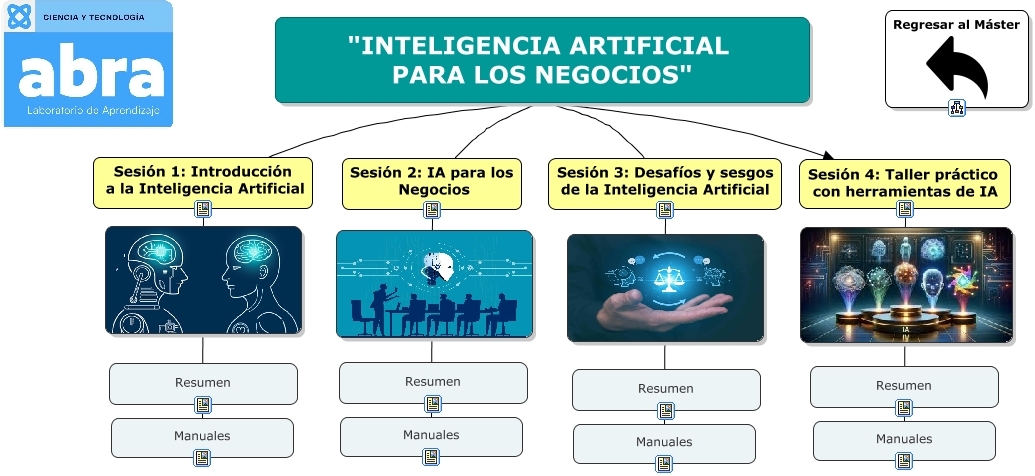 Este Cmap, tiene información relacionada con: INTELIGENCIA ARTIFICIAL PARA LOS NEGOCIOS, Sesión 4: Taller práctico con herramientas de IA Manuales, "INTELIGENCIA ARTIFICIAL PARA LOS NEGOCIOS" Sesión 2: IA para los Negocios, Sesión 1: Introducción a la Inteligencia Artificial Manuales, "INTELIGENCIA ARTIFICIAL PARA LOS NEGOCIOS" Sesión 4: Taller práctico con herramientas de IA, "INTELIGENCIA ARTIFICIAL PARA LOS NEGOCIOS" Sesión 3: Desafíos y sesgos de la Inteligencia Artificial, "INTELIGENCIA ARTIFICIAL PARA LOS NEGOCIOS" Sesión 1: Introducción a la Inteligencia Artificial, Sesión 2: IA para los Negocios Manuales, Sesión 3: Desafíos y sesgos de la Inteligencia Artificial Manuales