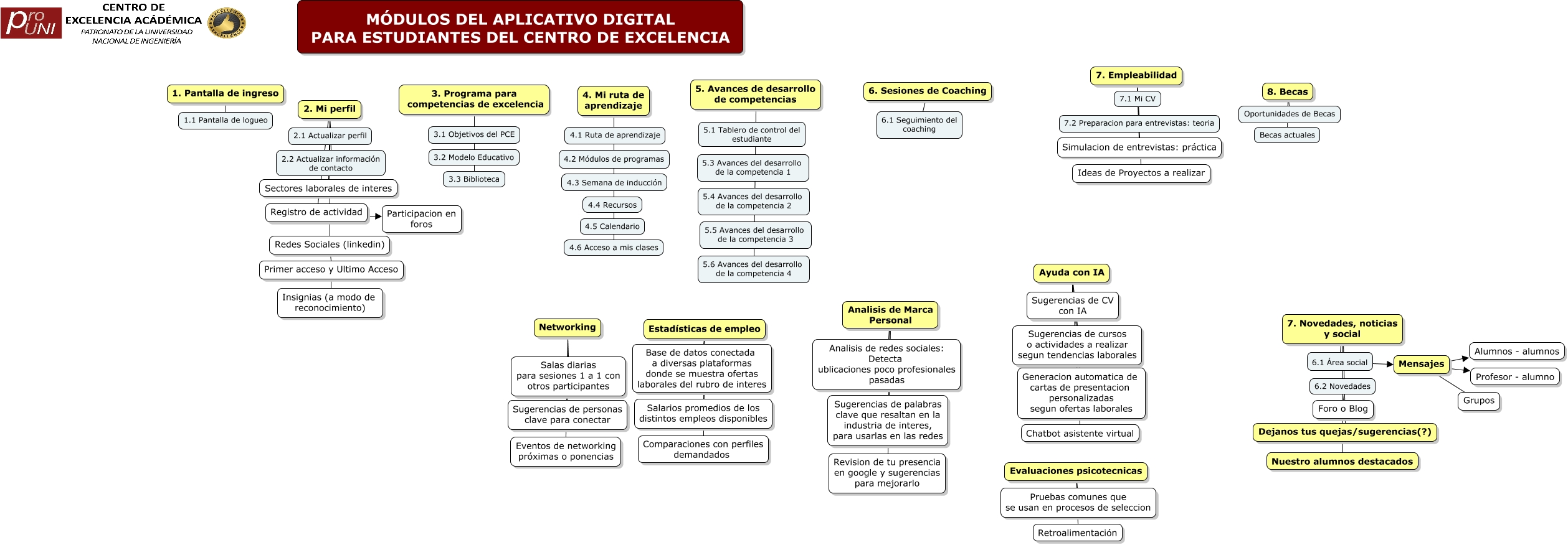 Este Cmap, tiene información relacionada con: MODULOS DEL APLICATIVO DIGITAL PARA EL ESTUDIANTE CENTRO DE EXCELENCIA