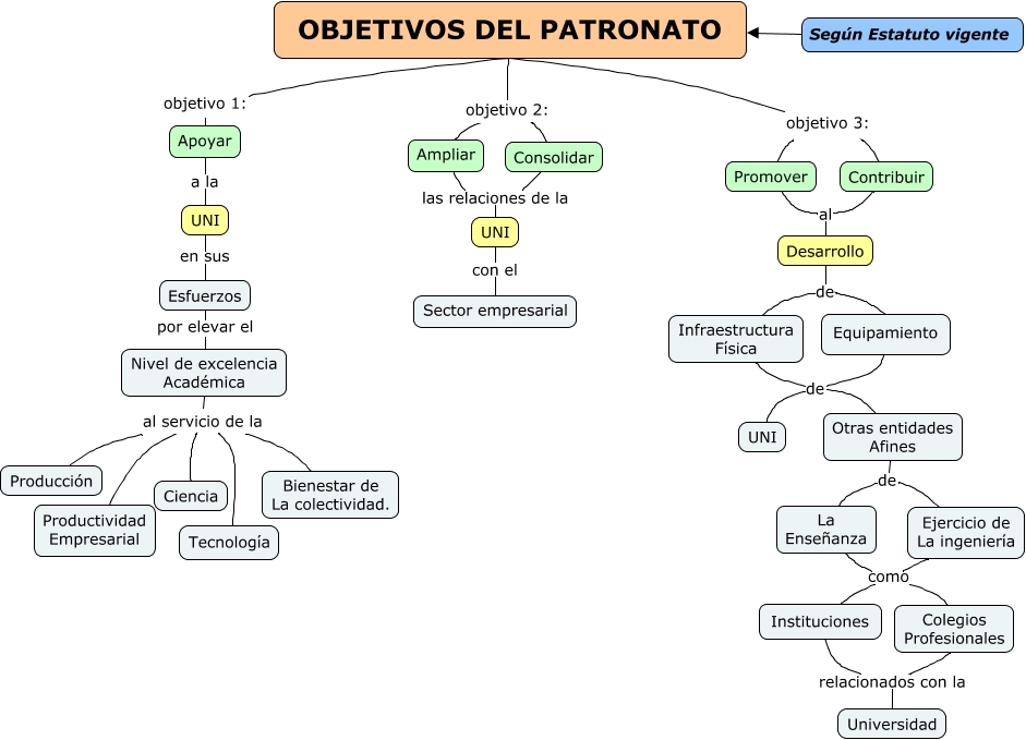 Este Cmap, tiene información relacionada con: OBJETIVOS DEL PATRONATO, Consolidar las relaciones de la UNI, Nivel de excelencia Académica al servicio de la Productividad Empresarial, Nivel de excelencia Académica al servicio de la Ciencia, Apoyar a la UNI, Infraestructura Física de UNI, Nivel de excelencia Académica al servicio de la Tecnología, OBJETIVOS DEL PATRONATO objetivo 1: Apoyar, OBJETIVOS DEL PATRONATO objetivo 3: Promover, OBJETIVOS DEL PATRONATO objetivo 2: Ampliar, Nivel de excelencia Académica al servicio de la Producción, Ejercicio de La ingeniería como Instituciones, Infraestructura Física de Otras entidades Afines, La Enseñanza como Instituciones, Desarrollo de Infraestructura Física, Equipamiento de UNI, Contribuir al Desarrollo, Otras entidades Afines de La Enseñanza, Otras entidades Afines de Ejercicio de La ingeniería, Ampliar las relaciones de la UNI, Desarrollo de Equipamiento