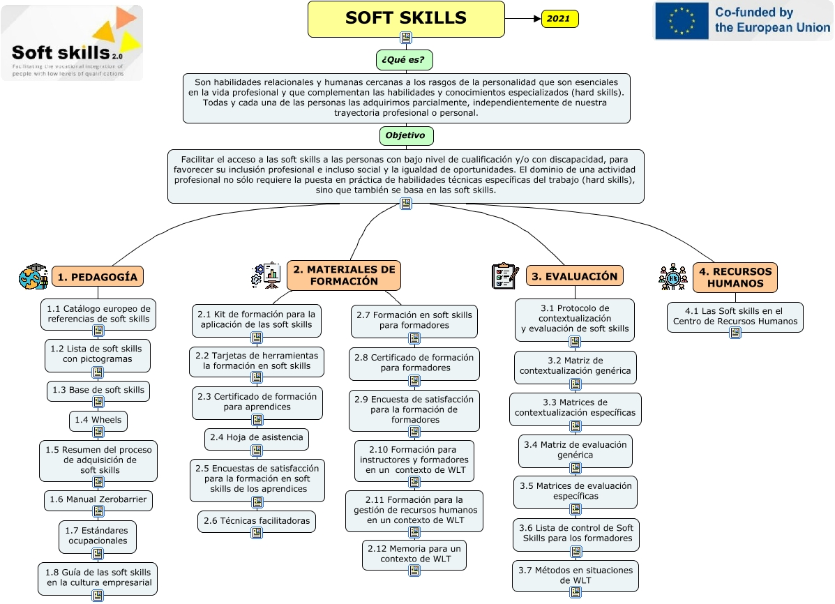 Este Cmap, tiene información relacionada con: SOFT SKILLS, SOFT SKILLS 2021, Facilitar el acceso a las soft skills a las personas con bajo nivel de cualificación y/o con discapacidad, para favorecer su inclusión profesional e incluso social y la igualdad de oportunidades. El dominio de una actividad profesional no sólo requiere la puesta en práctica de habilidades técnicas específicas del trabajo (hard skills), sino que también se basa en las soft skills. 3. EVALUACIÓN, 1. PEDAGOGÍA 1.8 Guía de las soft skills en la cultura empresarial, 2.7 Formación en soft skills para formadores 2.12 Memoria para un contexto de WLT, 3. EVALUACIÓN 3.7 Métodos en situaciones de WLT, Facilitar el acceso a las soft skills a las personas con bajo nivel de cualificación y/o con discapacidad, para favorecer su inclusión profesional e incluso social y la igualdad de oportunidades. El dominio de una actividad profesional no sólo requiere la puesta en práctica de habilidades técnicas específicas del trabajo (hard skills), sino que también se basa en las soft skills. 1. PEDAGOGÍA, 2. MATERIALES DE FORMACIÓN 2.1 Kit de formación para la aplicación de las soft skills, 2. MATERIALES DE FORMACIÓN 2.7 Formación en soft skills para formadores, 2.1 Kit de formación para la aplicación de las soft skills 2.6 Técnicas facilitadoras, 4. RECURSOS HUMANOS 4.1 Las Soft skills en el Centro de Recursos Humanos, SOFT SKILLS Facilitar el acceso a las soft skills a las personas con bajo nivel de cualificación y/o con discapacidad, para favorecer su inclusión profesional e incluso social y la igualdad de oportunidades. El dominio de una actividad profesional no sólo requiere la puesta en práctica de habilidades técnicas específicas del trabajo (hard skills), sino que también se basa en las soft skills., Facilitar el acceso a las soft skills a las personas con bajo nivel de cualificación y/o con discapacidad, para favorecer su inclusión profesional e incluso social y la igualdad de oportunidades. El dominio de una actividad profesional no sólo requiere la puesta en práctica de habilidades técnicas específicas del trabajo (hard skills), sino que también se basa en las soft skills. 2. MATERIALES DE FORMACIÓN, Facilitar el acceso a las soft skills a las personas con bajo nivel de cualificación y/o con discapacidad, para favorecer su inclusión profesional e incluso social y la igualdad de oportunidades. El dominio de una actividad profesional no sólo requiere la puesta en práctica de habilidades técnicas específicas del trabajo (hard skills), sino que también se basa en las soft skills. 4. RECURSOS HUMANOS
