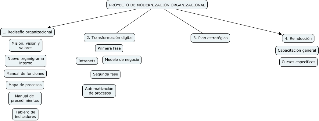 Este Cmap, tiene información relacionada con: PROYECTO DE MODERNIZACIÓN ORGANIZACIONAL, PROYECTO DE MODERNIZACIÓN ORGANIZACIONAL 3. Plan estratégico, PROYECTO DE MODERNIZACIÓN ORGANIZACIONAL 1. Rediseño organizacional, PROYECTO DE MODERNIZACIÓN ORGANIZACIONAL 4. Reinducción, PROYECTO DE MODERNIZACIÓN ORGANIZACIONAL 2. Transformación digital