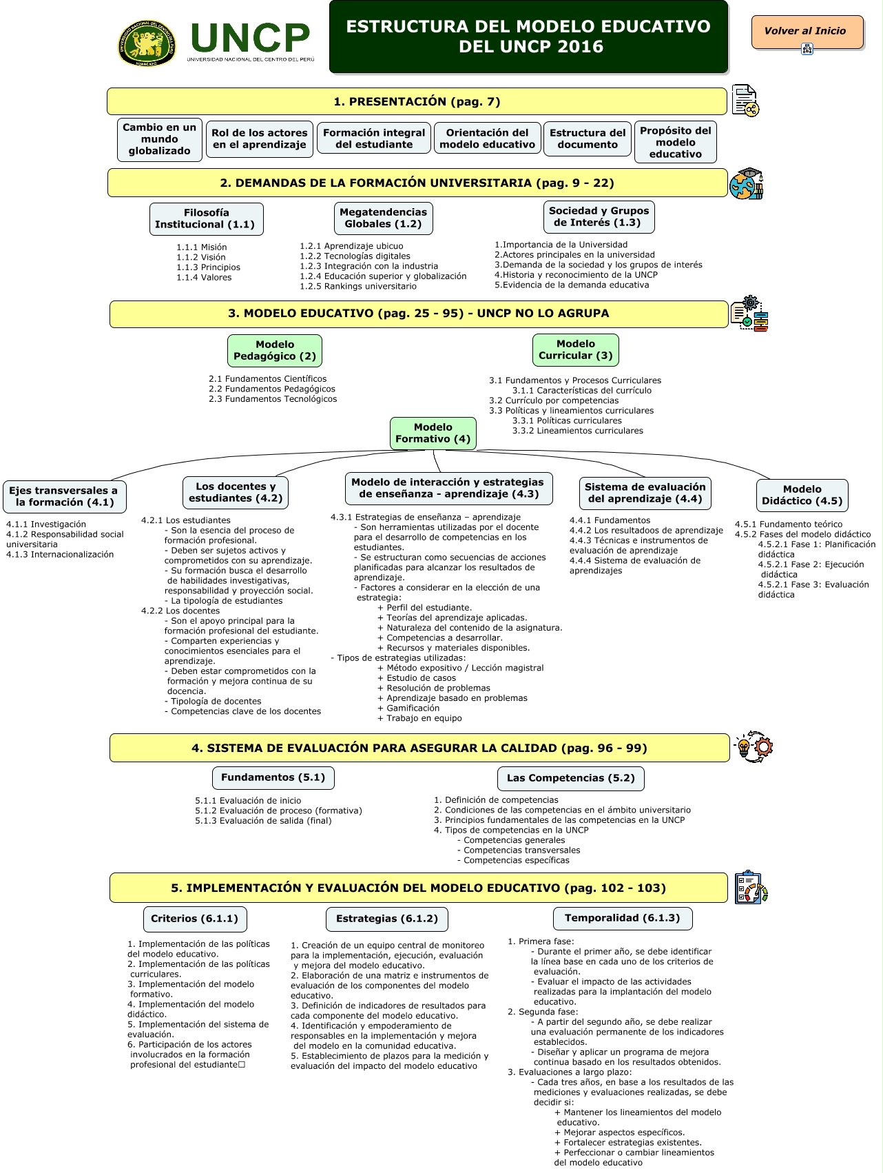 Este Cmap, tiene información relacionada con: ESTRUCTURA DEL MODELO EDUCATIVO DEL UNCP 2016, Modelo Formativo (4) Sistema de evaluación del aprendizaje (4.4), Modelo Formativo (4) Modelo de interacción y estrategias de enseñanza - aprendizaje (4.3), Modelo Formativo (4) Ejes transversales a la formación (4.1), Modelo Formativo (4) Modelo Didáctico (4.5), Modelo Formativo (4) Los docentes y estudiantes (4.2)