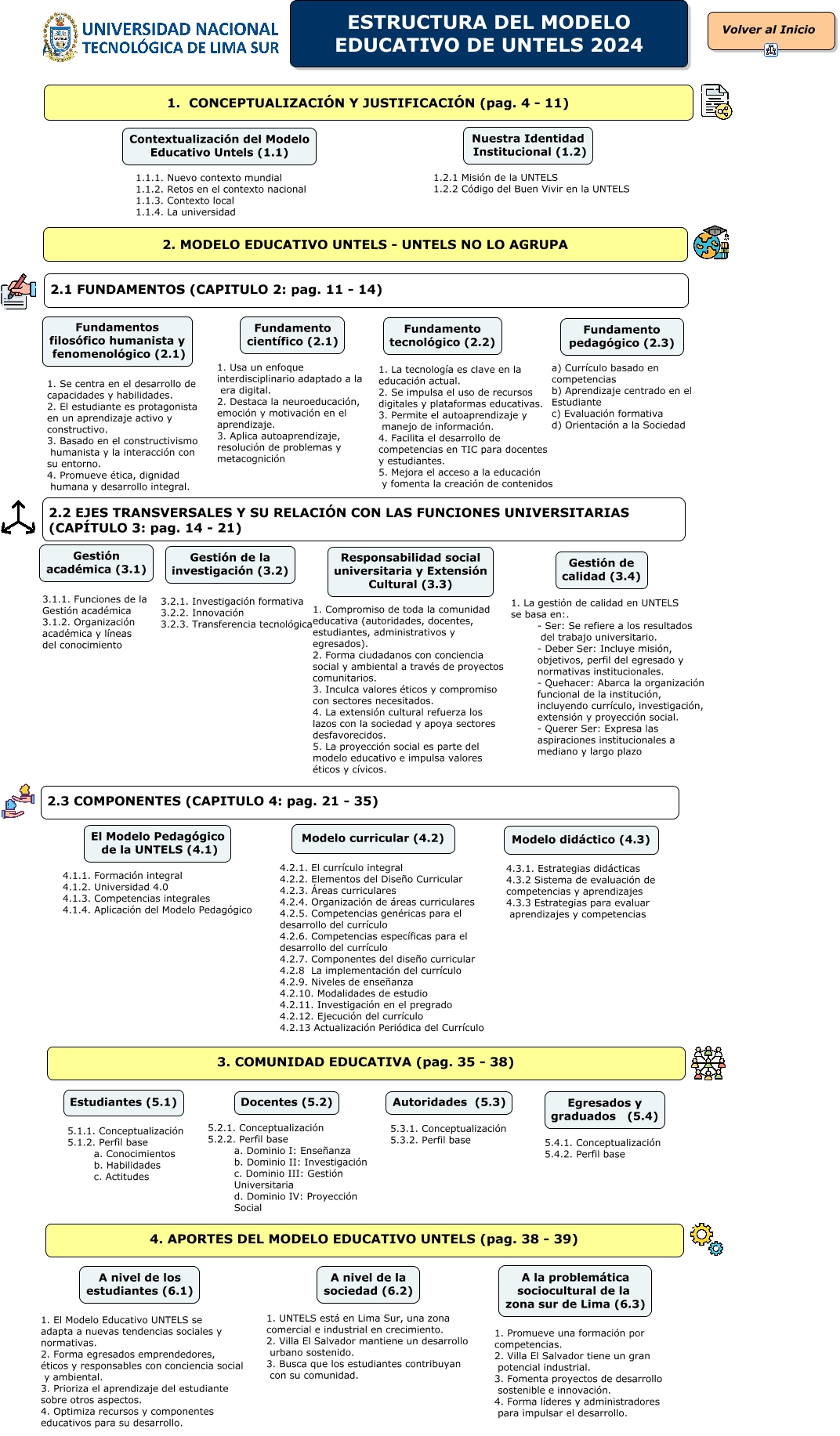 Este Cmap, tiene información relacionada con: ESTRUCTURA DEL MODELO EDUCATIVO DE UNTELS 2024