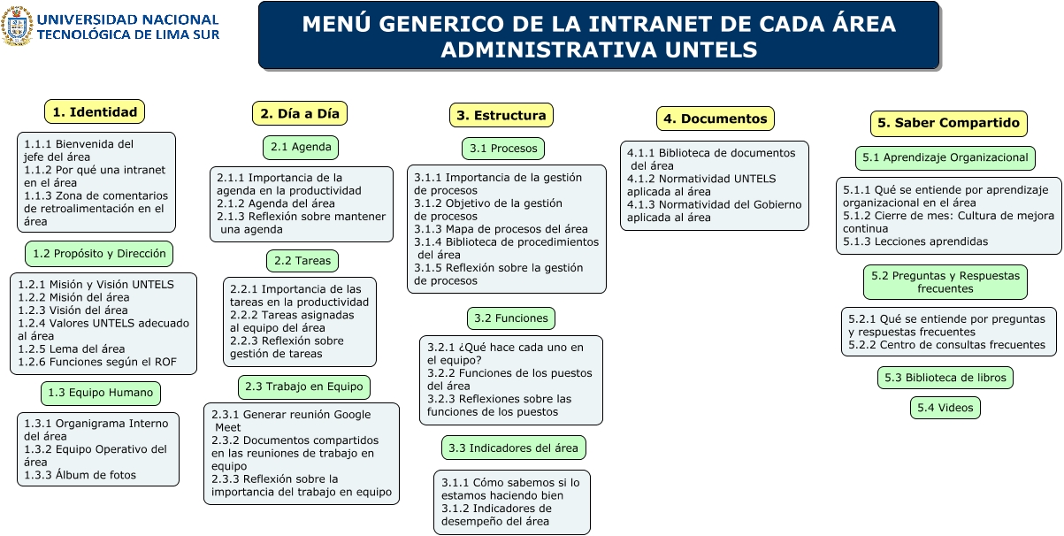 Este Cmap, tiene información relacionada con: MENÚ GENERICO DE LA INTRANET DE CADA ÁREA ADMINISTRATIVA UNTELS