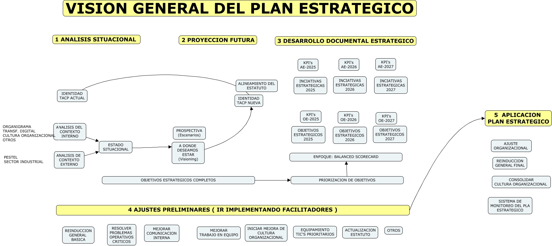 This Concept Map, created with IHMC CmapTools, has information related to: VISION GENERAL PE TACP, ANALISIS DEL CONTEXTO INTERNO ESTADO SITUACIONAL, ANALISIS DE CONTEXTO EXTERNO ESTADO SITUACIONAL, IDENTIDAD TACP ACTUAL IDENTIDAD TACP NUEVA, ESTADO SITUACIONAL A DONDE DESEAMOS ESTAR (Visioning), 4 AJUSTES PRELIMINARES ( IR IMPLEMENTANDO FACILITADORES ) 5 APLICACION PLAN ESTRATEGICO, A DONDE DESEAMOS ESTAR (Visioning) IDENTIDAD TACP NUEVA, OBJETIVOS ESTRATEGICOS COMPLETOS PRIORIZACION DE OBJETIVOS, PRIORIZACION DE OBJETIVOS ENFOQUE: BALANCED SCORECARD