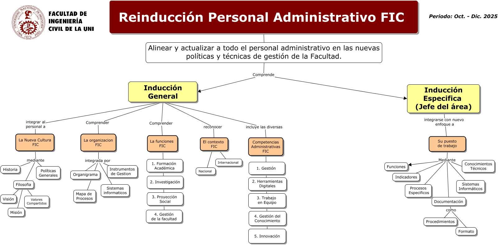 Este Cmap, tiene información relacionada con: Re Inducción 2025, La organizacion FIC integrada por Instrumentos de Gestion, Filosofia Misión, Alinear y actualizar a todo el personal administrativo en las nuevas políticas y técnicas de gestión de la Facultad. Comprende Inducción General, Competencias Administrativas FIC 5. Innovación, Su puesto de trabajo Mediante Indicadores, Su puesto de trabajo Mediante Sistemas Informáticos, Filosofia Valores Compartidos, La organizacion FIC integrada por Sistemas informaticos, Inducción General Comprender La organizacion FIC, La organizacion FIC integrada por Mapa de Procesos, La Nueva Cultura FIC mediante Políticas Generales, Inducción General reconocer El contexto FIC, El contexto FIC Nacional, La Nueva Cultura FIC mediante Filosofia, Su puesto de trabajo Mediante Funciones, Su puesto de trabajo Mediante Documentación, La Nueva Cultura FIC mediante Historia, Alinear y actualizar a todo el personal administrativo en las nuevas políticas y técnicas de gestión de la Facultad. Comprende Inducción Especifica (Jefe del área), La funciones FIC 4. Gestión de la facultad, Filosofia Visión